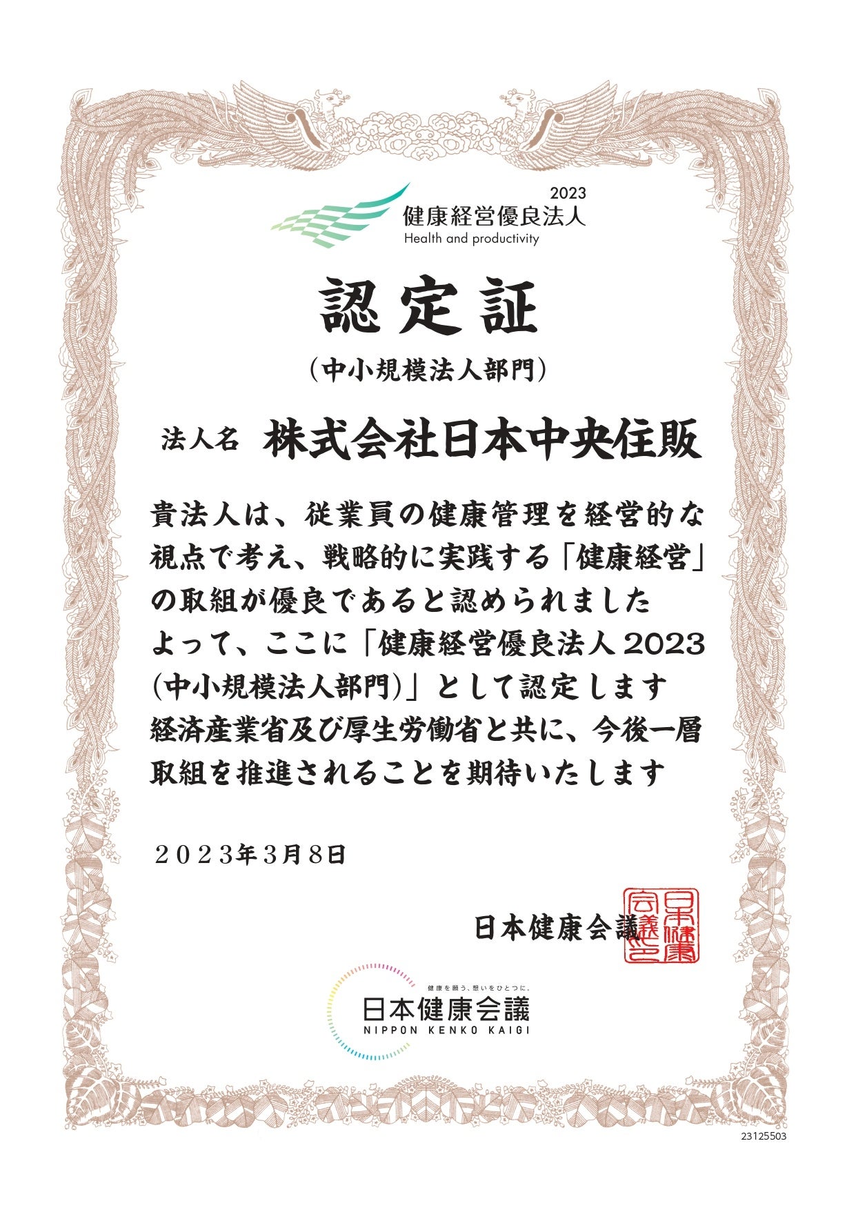 株式会社日本中央住販は「健康経営優良法人」に認定されました。