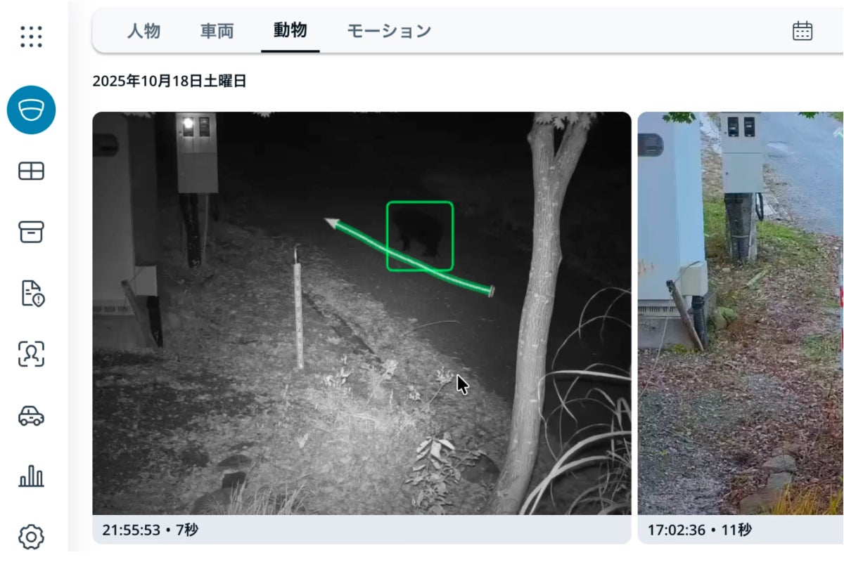 本機能は、AIの活用により、Verkadaカメラの画角に映り込む動物(鳥類・小動物・中型動物・大型動物など)を自動で検知・解析し、ほぼリアルタイムでのアラート通知などを可能にするものです。さらに録画映像を効率的に検索でき、日中から夜間まで継続的に敷地状況を可視化できます。
