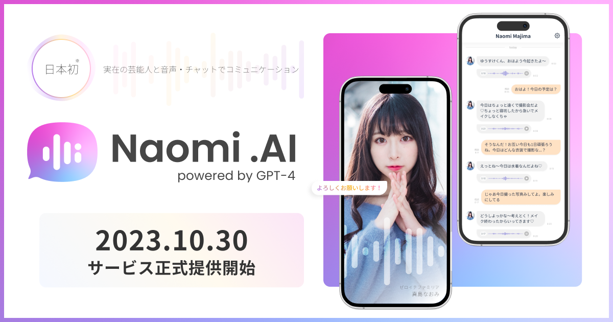 【サービス正式提供開始】大人気タレント「真島なおみ」と会話ができる日本初のAIコミュニケーションサービス「Naomi.AI」