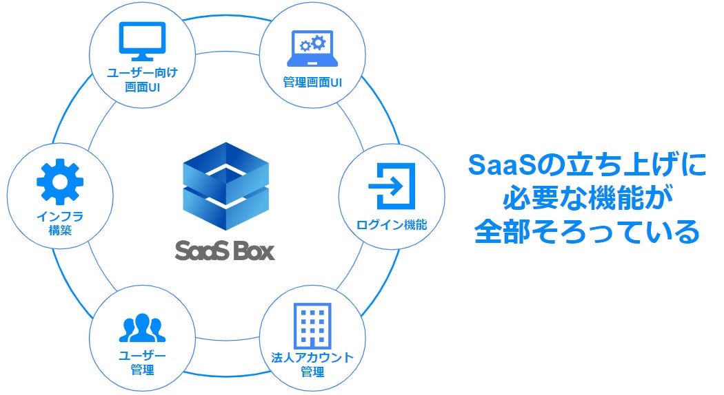 「SaaS Box」は、リプラがこれまで支援してきた多数のSaaS事業立ち上げに関する知見をもとに、SaaS事業の立ち上げに共通して必要な標準機能を全て揃えたプランになっております。