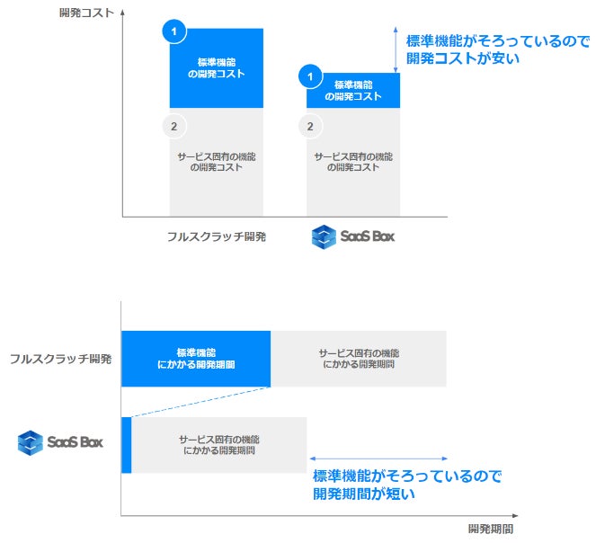SaaSの標準機能にかかる開発コストや期間を大幅に削減することができるため、サービスの需要が高くなっているタイミングを逃さずに開発・実装できます。