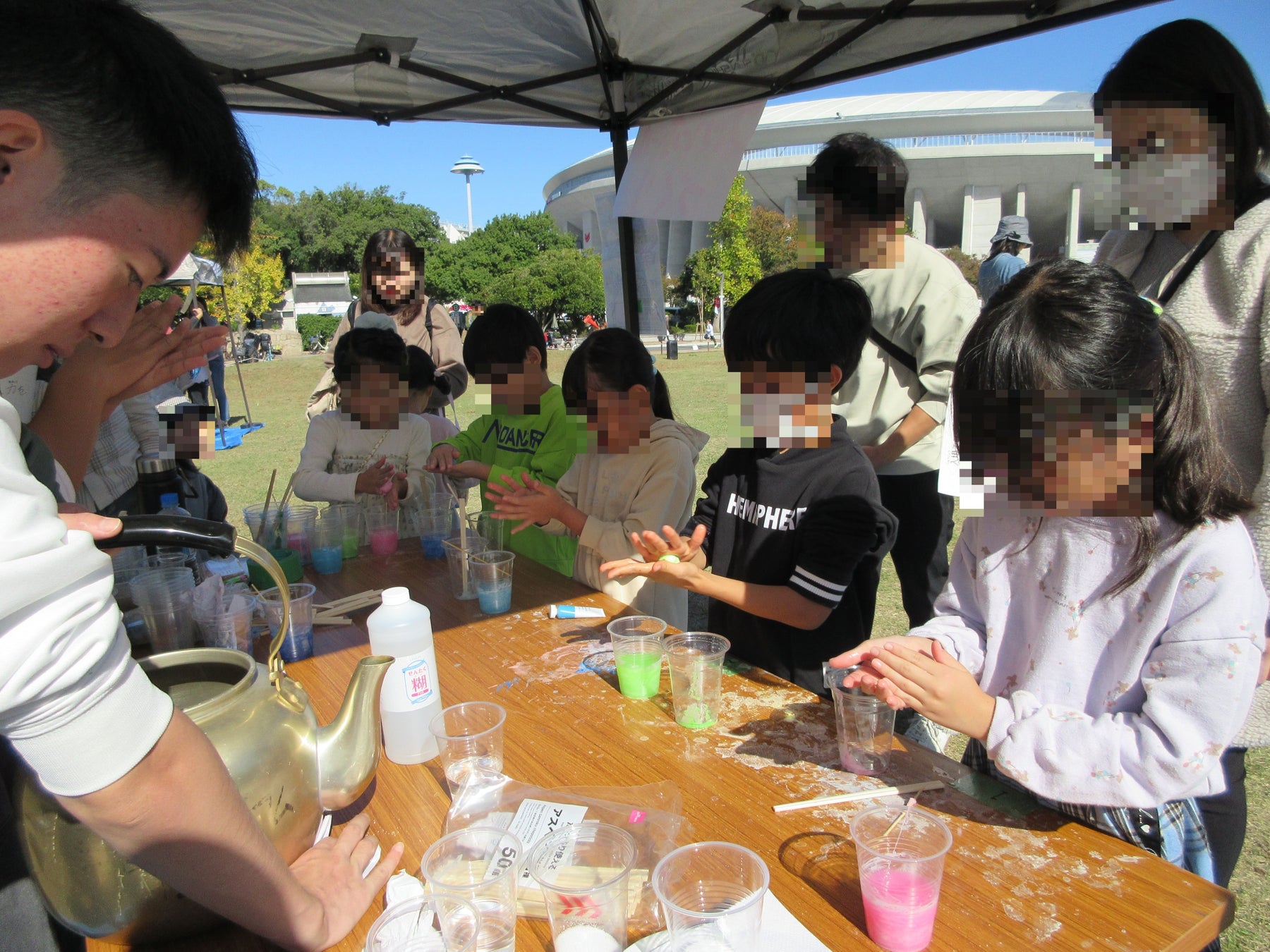 本イベントは、科学を家族で楽しく学ぶというテーマで実施。長居公園のコンセプトである「みんなわくわく、明日もわくわく。」の軸の1つ「学び」を主軸に、大阪公立大学商学部圓丸ゼミ(以下圓丸ゼミ)の5期生とともに半年間にわたって企画し、当日は学生ボランティアも募ったうえで学生を中心に運営まで行いました。