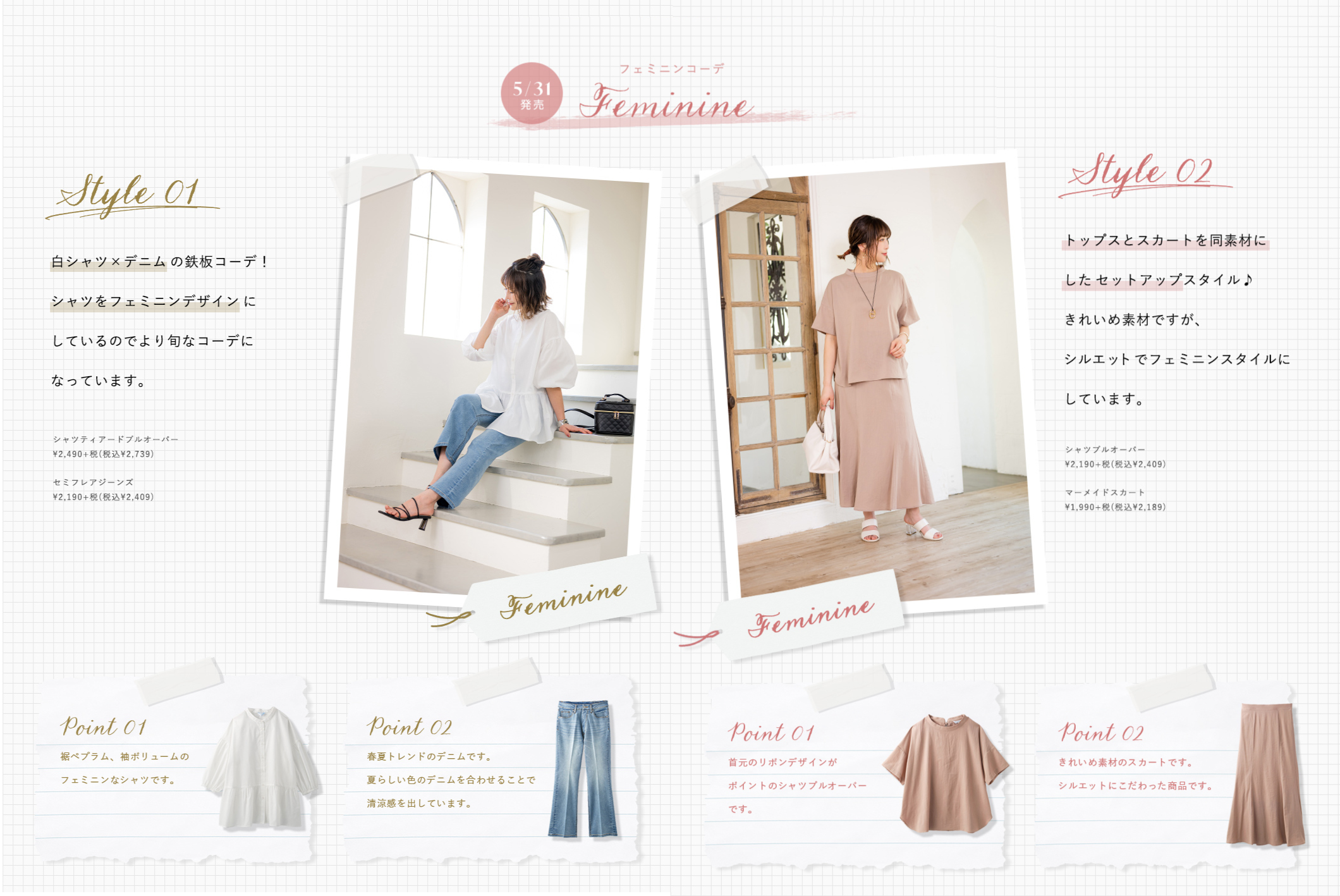 気分が上がる4つのフェミニンコーディネートをご紹介いたします。
