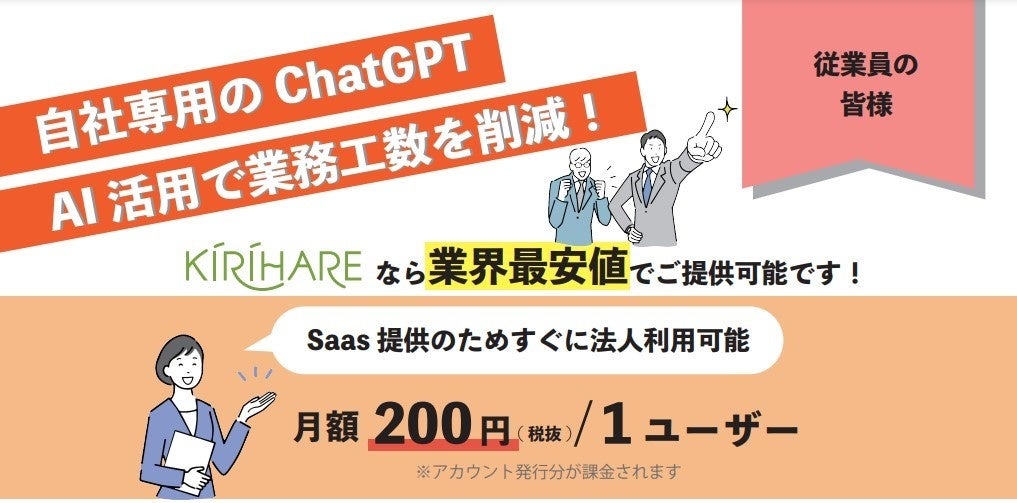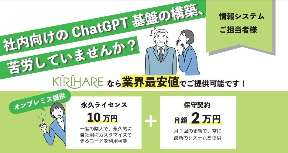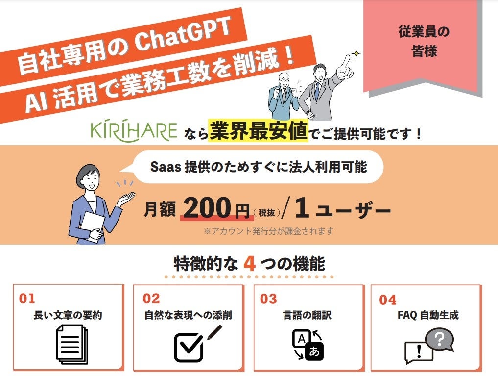 人事業務の効率化をAIで支援するキリハレから、法人向けのAIチャットツールを提供開始