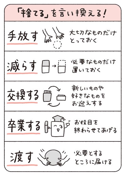 だからこそ、書籍のテーマは整理整頓や片付けではなく、「捨てる」にしました。この本を手に取った皆様には、とにかく捨てることの大切さを知ってほしい。そして捨てる決断をできたことが自信になり、ひいては片付けコンプレックスをも"捨てられる"ようになってほしい。