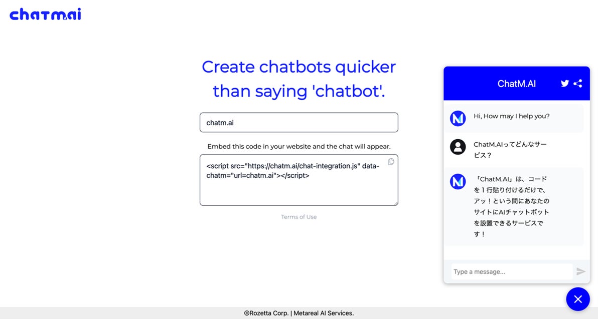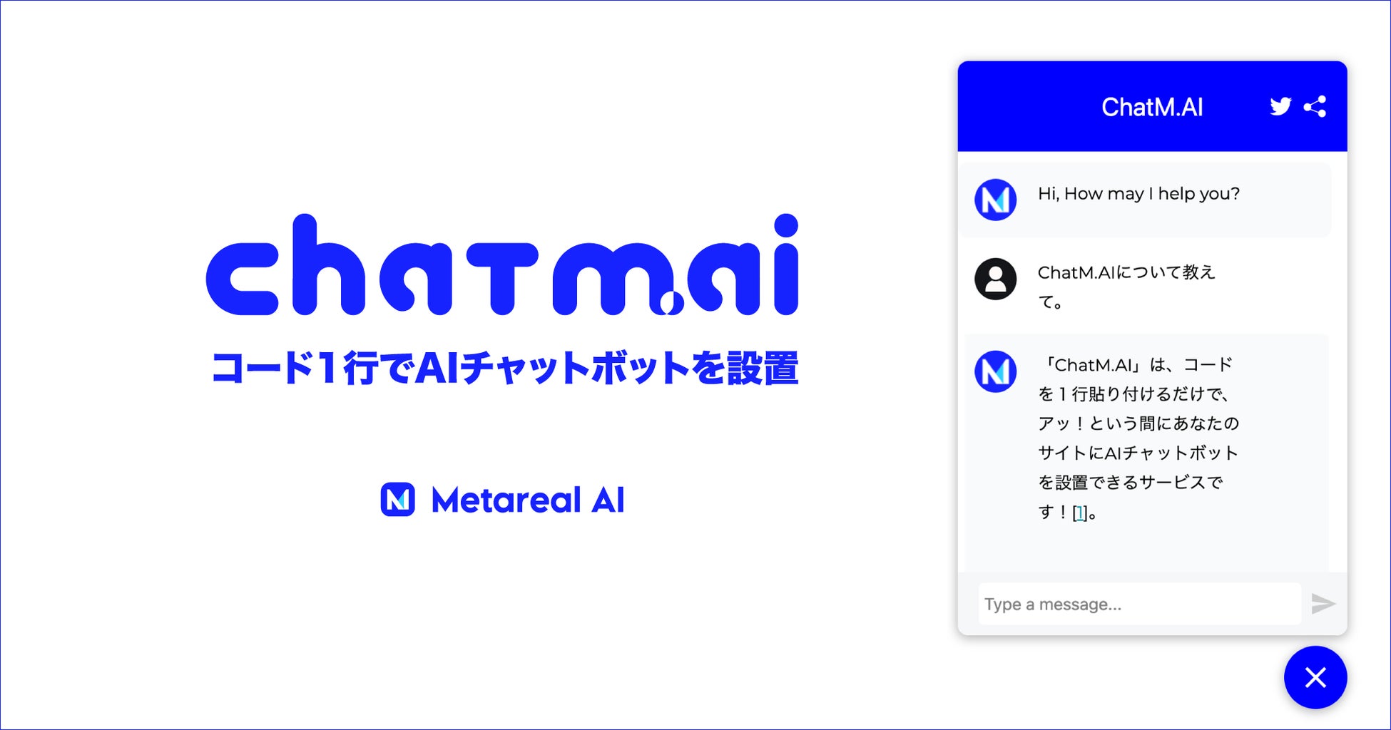「ChatM.AI」は、どんなサイトでもその内容をAIが学習し、チャットボットが回答してくれる便利なサービスです。