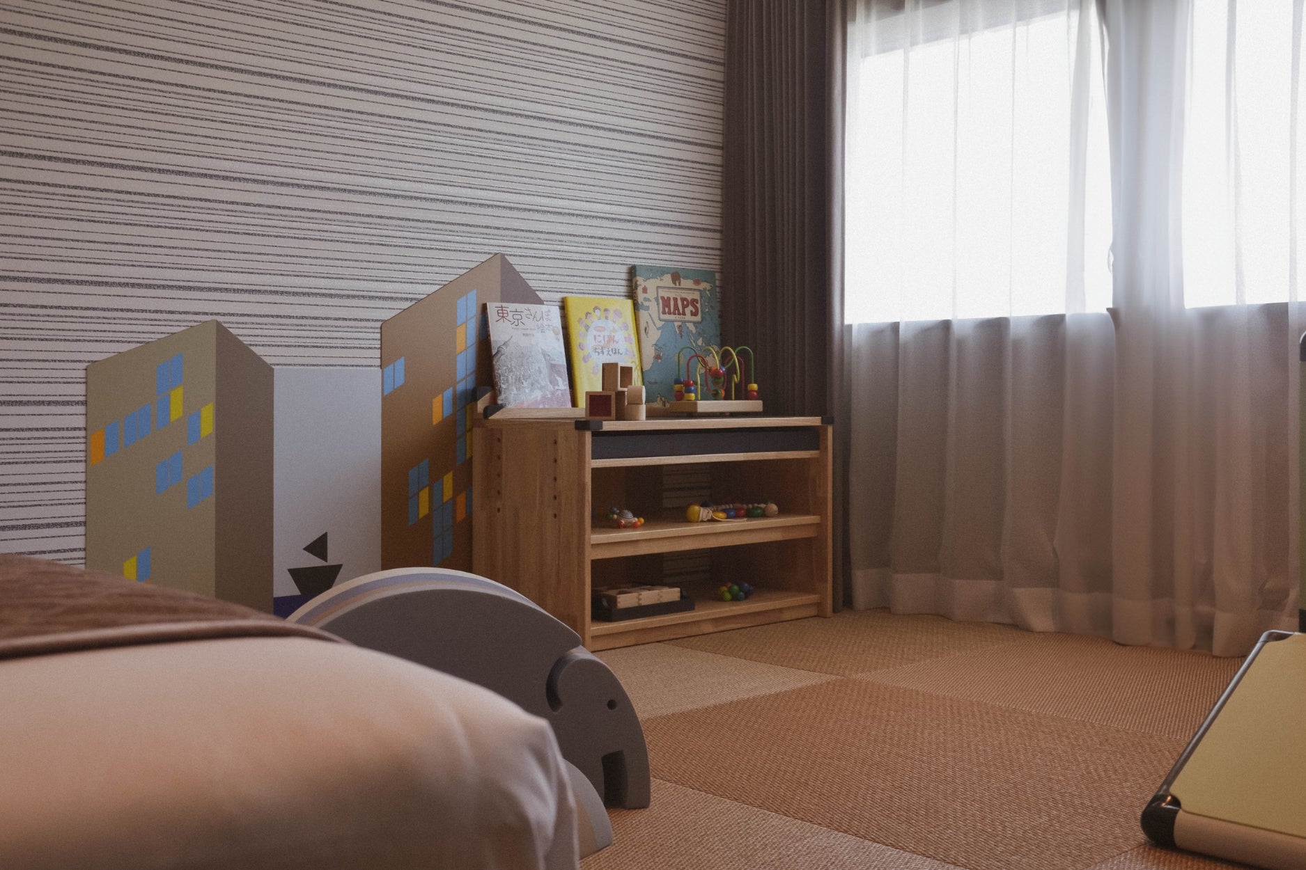 iFデザインアワード2024も受賞したインテリアになる知育家具。「MINORINO」で、ホテル滞在中に旅育を体験いただけます。