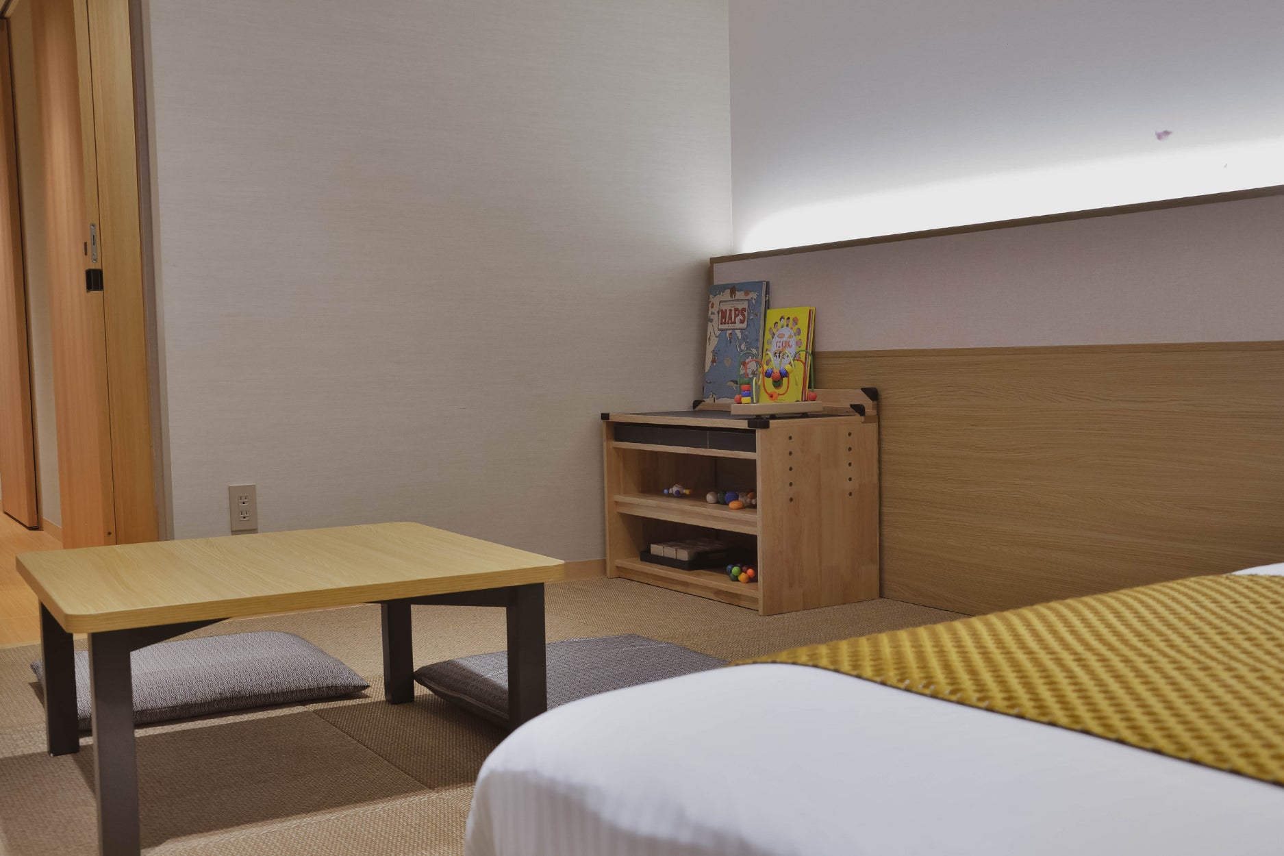 安全で楽しく、学びのあるおもちゃ棚を完備することは、旅行中のお父さん・お母さんの負担軽減にもつながります。どうぞ安心してお子さまたちの学びの時間をお楽しみください。