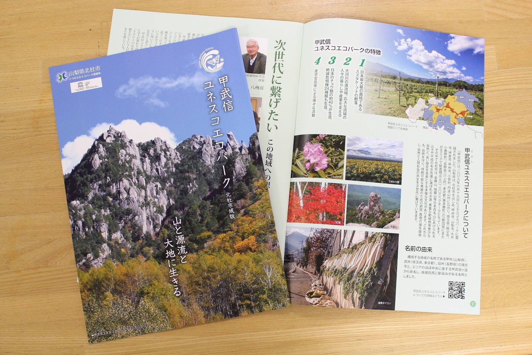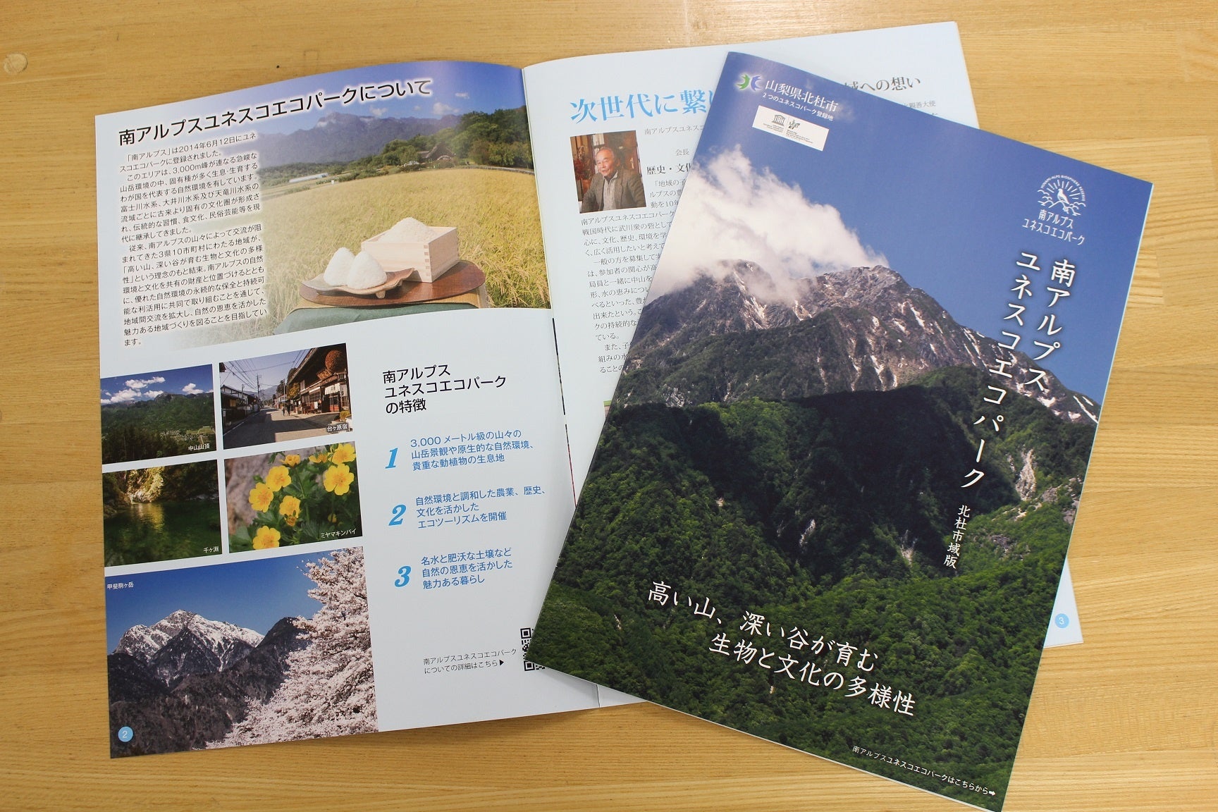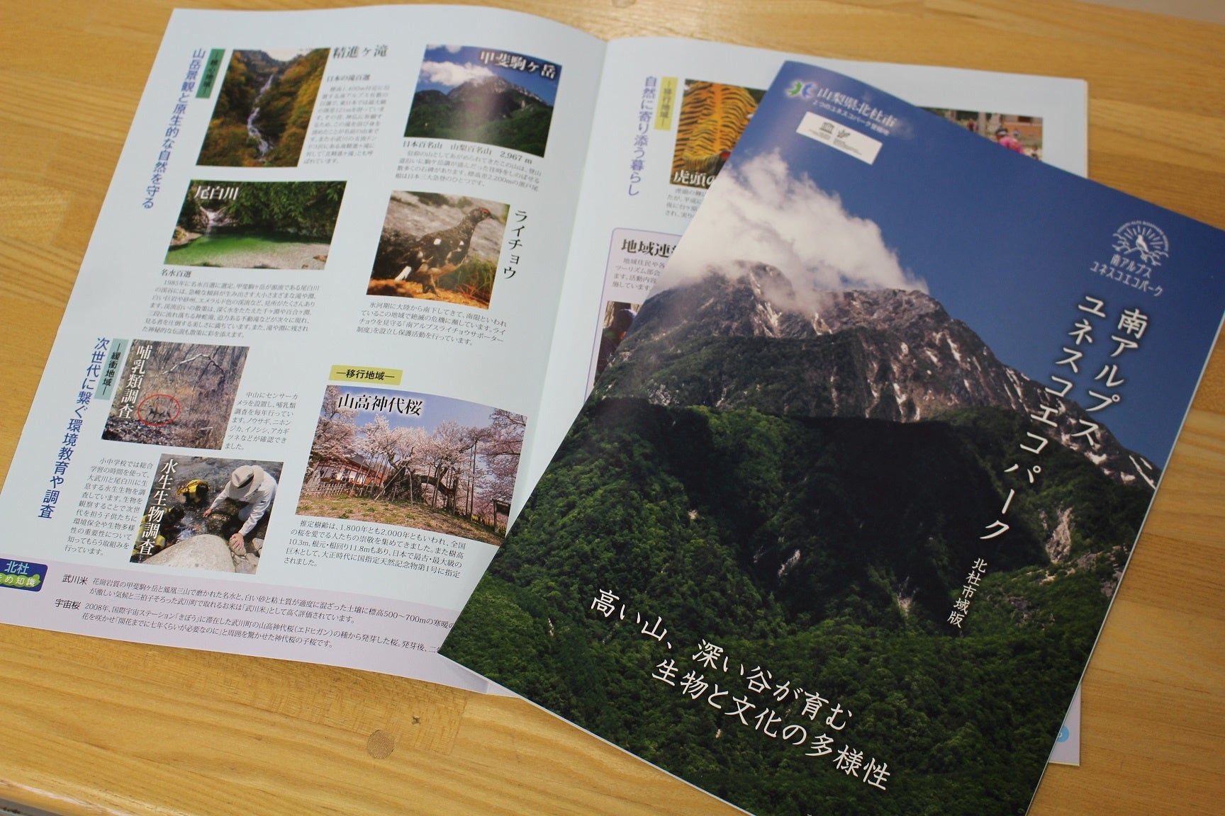 パンフレットで「南アルプスユネスコエコパーク」「甲武信ユネスコエコパーク」を紹介