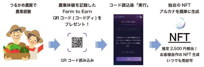 そこで今回、「アニカナ」のブロックチェーン技術を活用して、農業体験をされた方に「NFT」※2と呼ばれるデータにして、このNFTをセカンダリーマーケットで売却してお金にできる、「Farm to Earn」を実施いたしました。