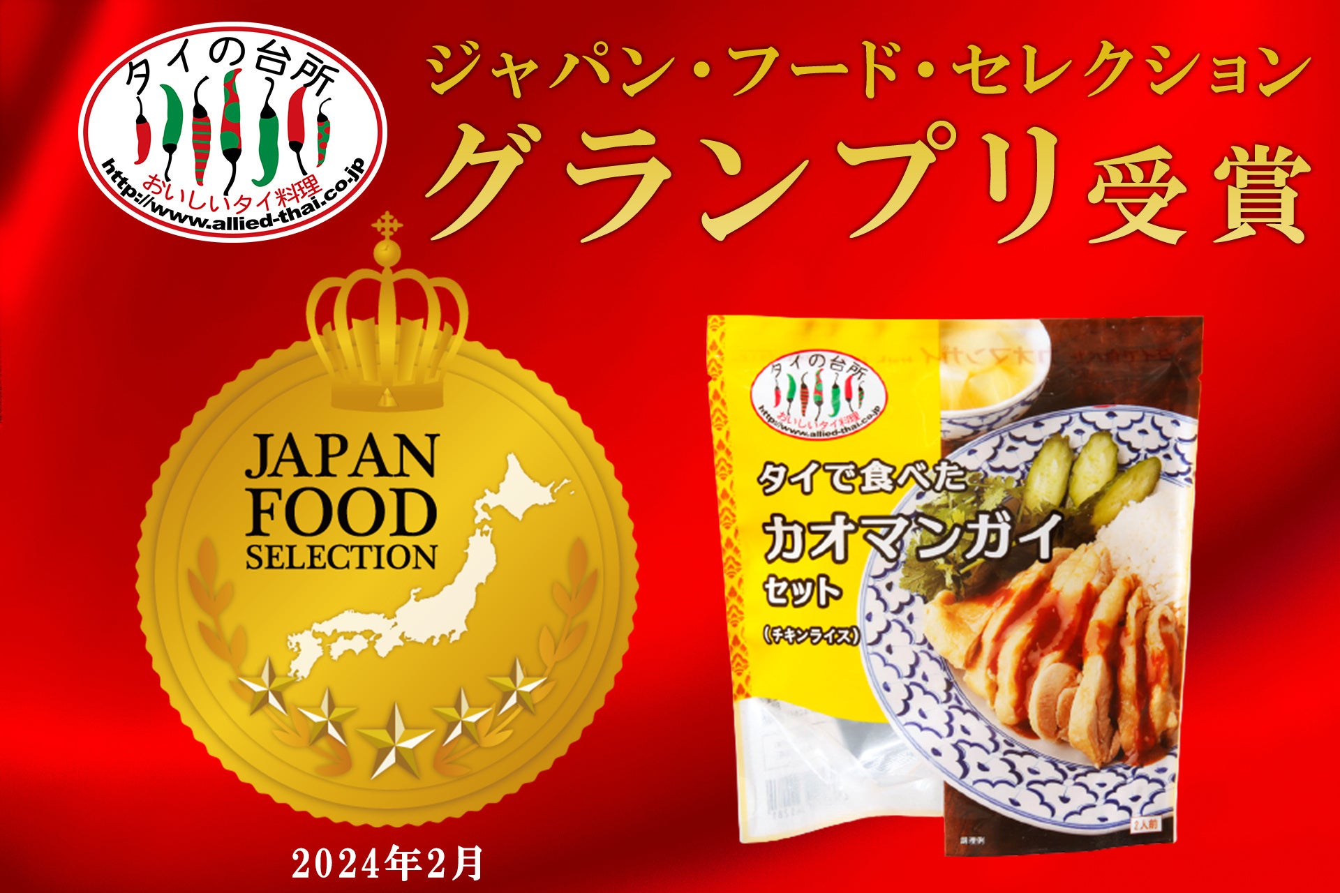 株式会社アライドコーポレーション(本社所在地:神奈川県横浜市 代表取締役社長:氏家勇祐)が製造販売する「タイで食べた カオマンガイセット」が一般社団法人日本フードアナリスト協会が主催する「第72回ジャパン・フード・セレクション(2024年2月)」において最高賞であるグランプリを受賞しました。