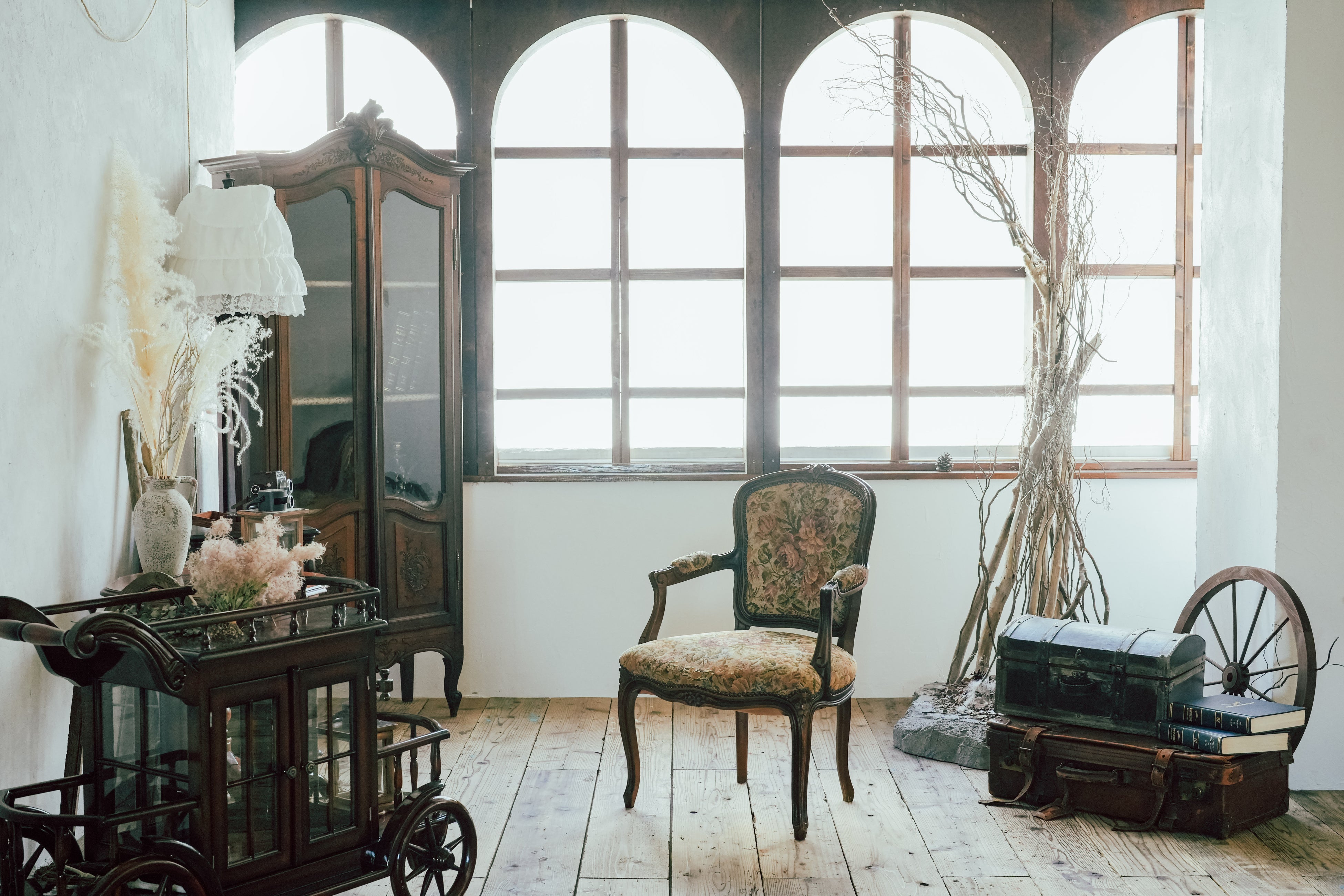 こだわり抜いたアンティーク家具とカメラマン自ら手がけた内装で、非日常的な空間で