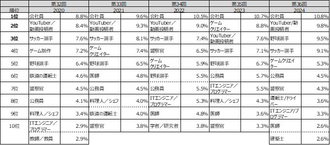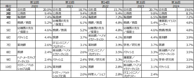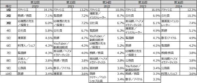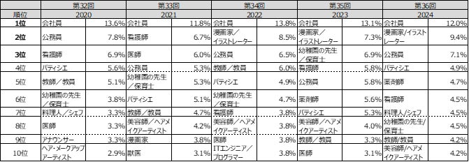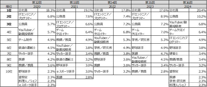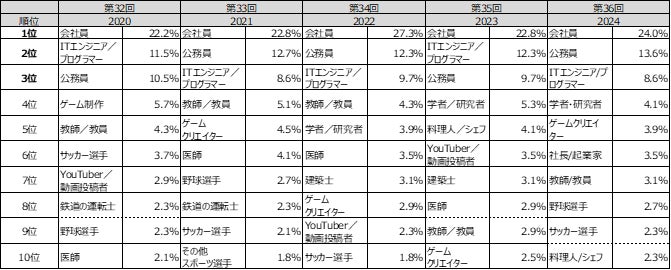 (参考)「大人になったらなりたいもの」ランキング推移(第32回以降)