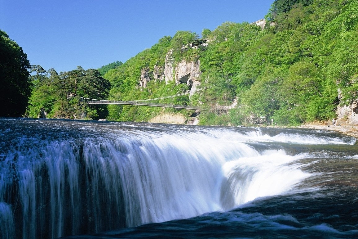 別名「東洋のナイアガラ」の愛称で多くの観光客が訪れる「吹割の滝」は、大迫力のスケールを間近に見ることができます。