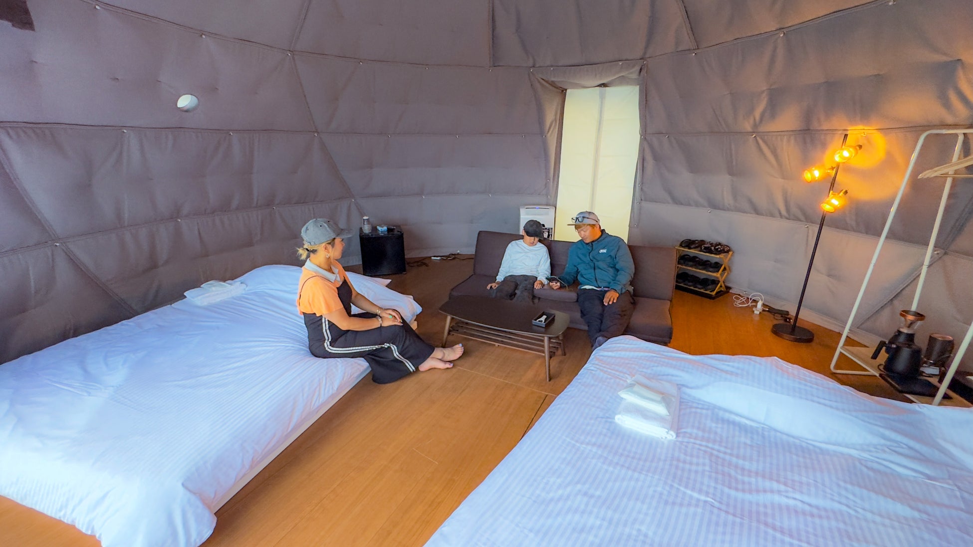 最大4名様までご宿泊いただけるグランピングドームテントをご用意。