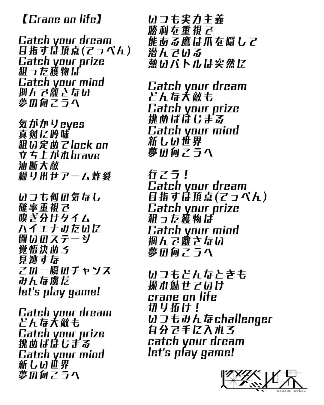 ボーカルと歌詞制作を担当された、ゆりなさんによる「いつもどんなときも 操れ魅せていけ Crane on life 切り拓け!」と言うメッセージの込められた楽曲を是非チェックしてください!