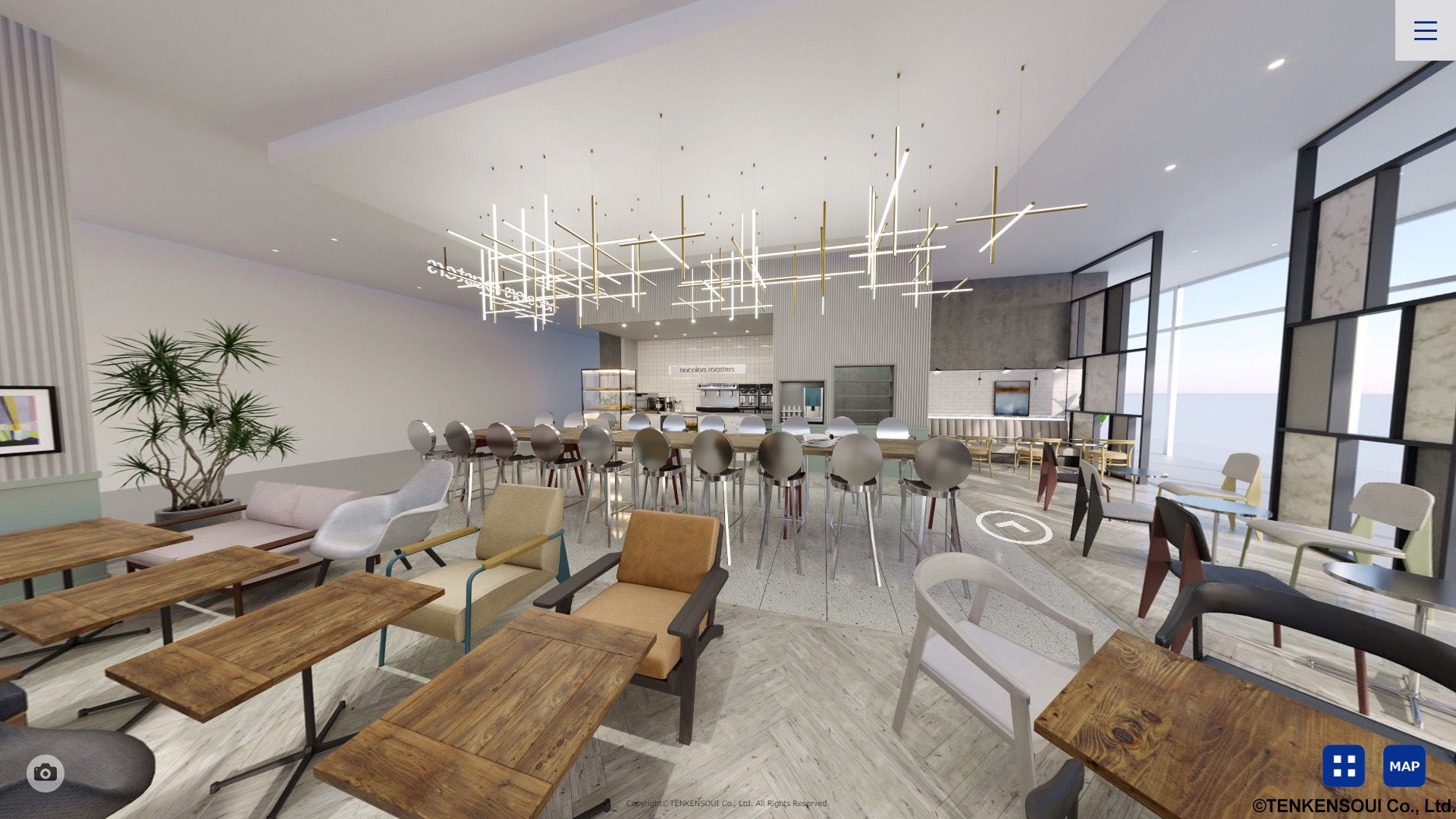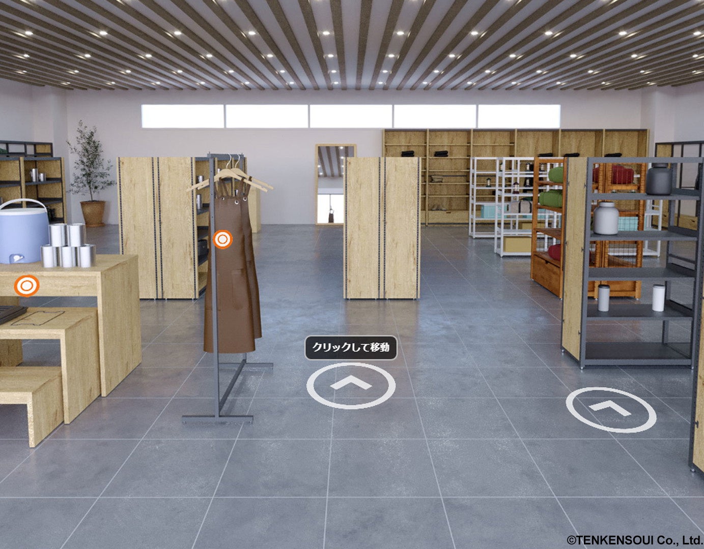 本ショールームは、ショッピングモール仕立てのバーチャル空間に、業種別にアパレル・雑貨店・量販店・アウトドア・ポップアップストア・リユースショップ・カフェ(施工イメージ)の7つの店舗、バックヤード空間が構築されています。什器商品は、カラーやオプションを好みに合わせて付け替えることができます。カタログ画像やショールーム展示では分かりづらかった什器商品の使用イメージを業種ごとにリアルに近い形で提供することで、お客様の商品検討・購入のサポートを実現しました。アプリのダウンロードは不要、「ストア・エキスプレス オンラインショップ」のオープンコンテンツなので、Webブラウザ上から誰でも自由に訪れ、閲覧・操作をすることができます。