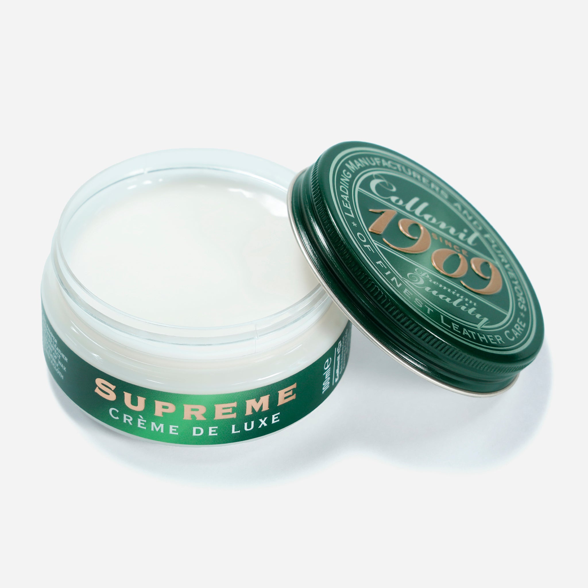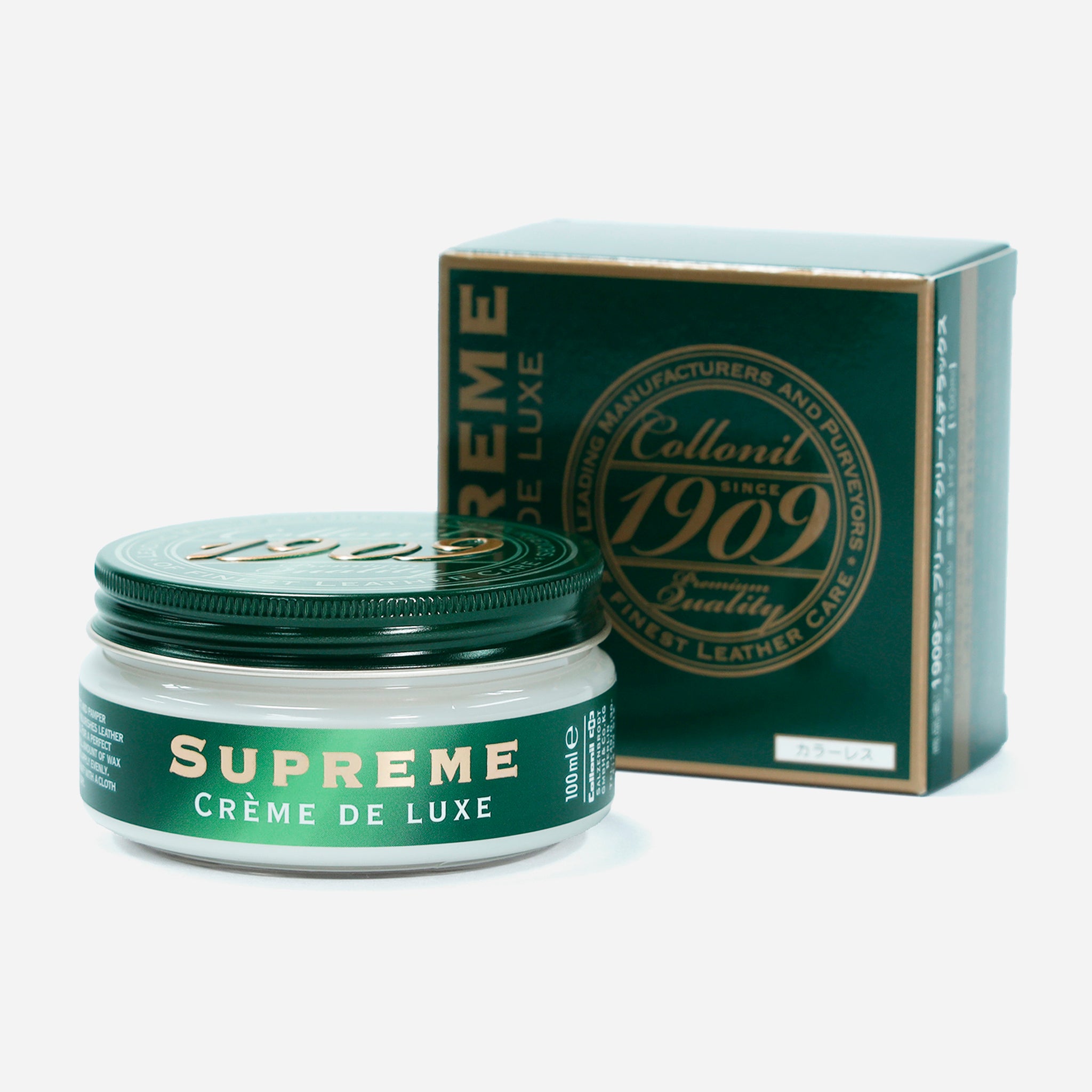 「1909シュプリームクリームデラックス」は、2013年の発売以来、コロニル商品の国内出荷額No.1を継続中の人気商品。靴だけでなく、バッグ、ウェア、家具等様々な皮革製品に潤いを与え、長く美しく保つための高品質な栄養クリームです。皮革製品を長く大切に使いたい方への贈り物として最適です。