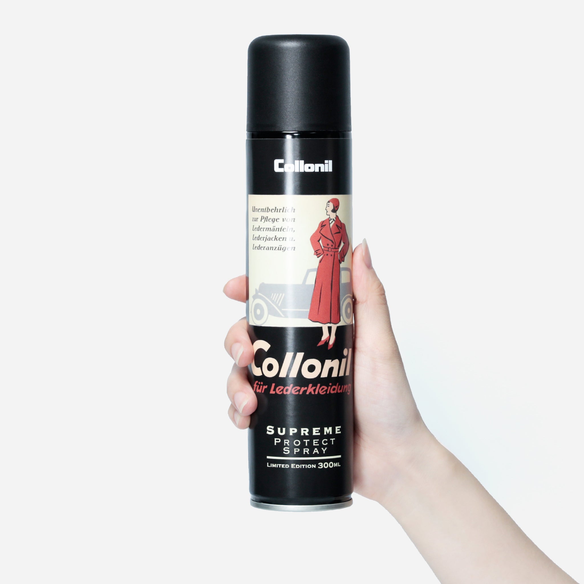 さらに今回は、日本正規代理店が企画した限定パッケージでご用意。過去ドイツで実際に使われていたコロニルの広告イラストを使用し、レトロでシックなデザインが魅力の、数量限定の特別パッケージです。110年を超える歴史あるブランドならではの雰囲気とともに大切なレザーのお手入れをお楽しみください。