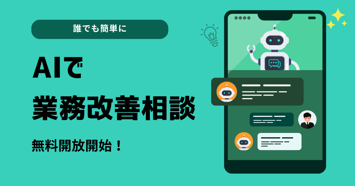 そのサービスの中の「業務改善相談」を無料でご提供。誰でも気軽に業務相談できます。ぜひお気軽にお試しください。