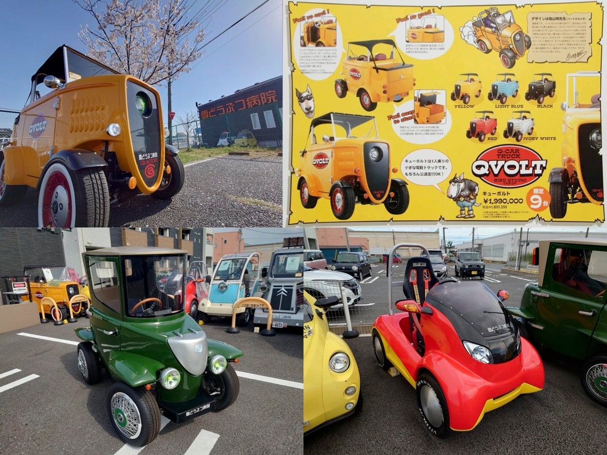 また今回特別エリアとして、雪どうぶつ病院の水口先生ご協力により、人気漫画『Dr.スランプ』や『ドラゴンボール』、そしてゲームのキャラクターデザインなどでも知られる漫 画家にしてデザイナーの『鳥山 明氏』。模型やクルマ好きでも知られる『鳥山 明氏』 がデザインを手がけた 1 人乗りの電気自動車が「QVOLT(キューボルト)」。