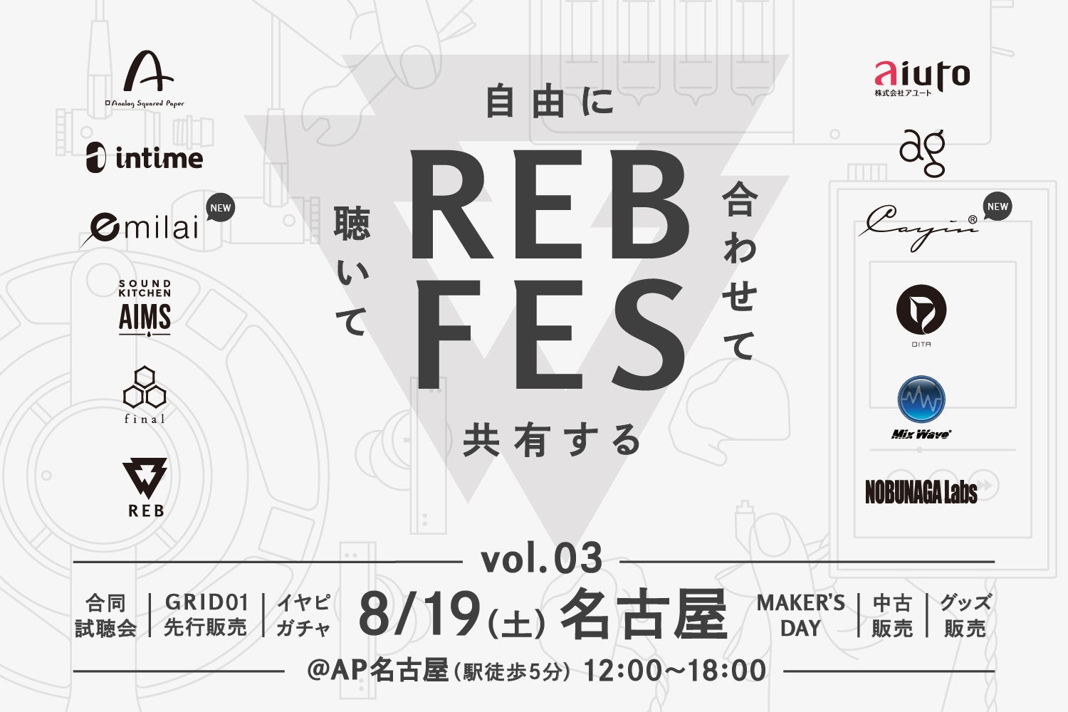【開催時間訂正】自由に組み合わせて聴き比べができる「REB fes vol.03@名古屋」2023年8月19日(土)開催決定!「REB fes」最多の8出展社・メーカーが参加!