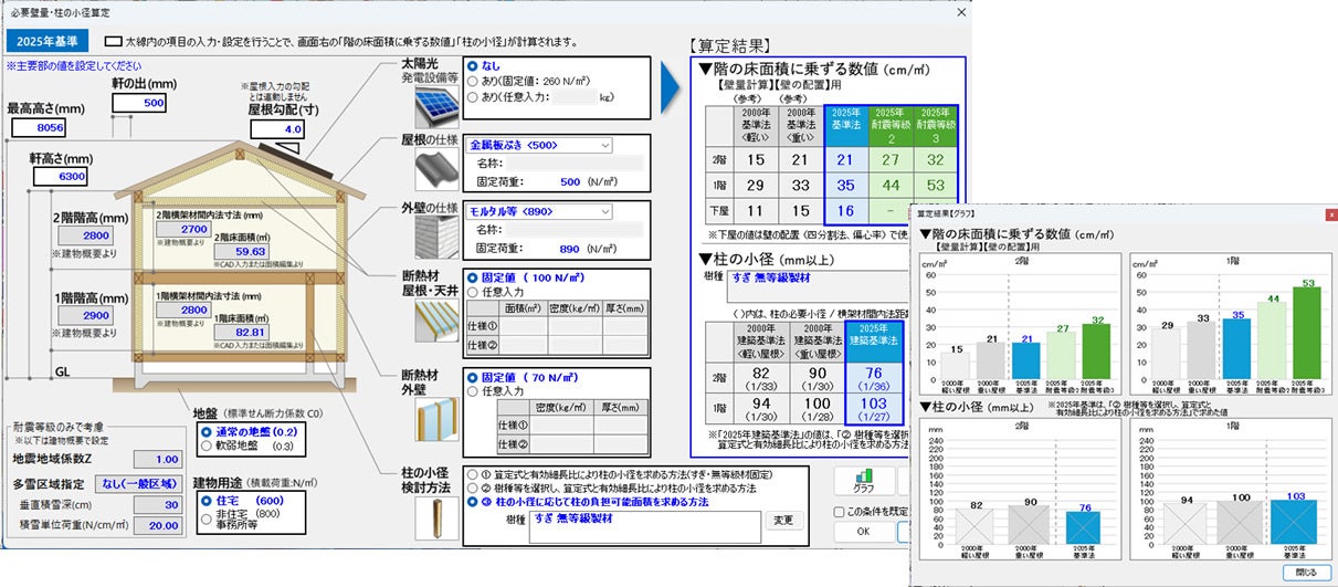 ①2025年施行建築基準法(壁量・柱の小径)の適合判定、