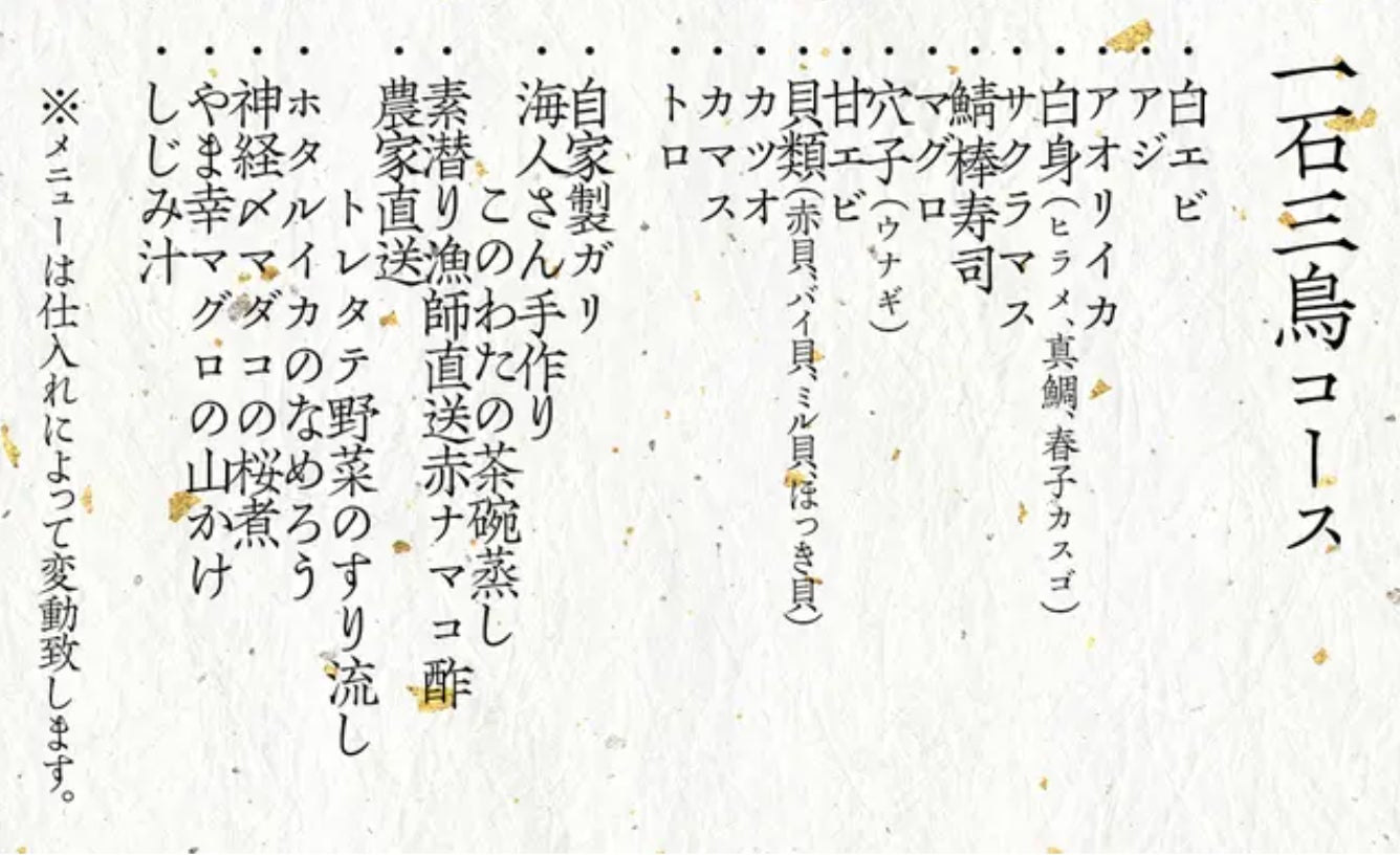 ……実は、大阪の店舗がオープンした際、東京にお住まいの方から多くのリクエストが届きました「東京でも、気軽に利用できる価格帯で、誰でも予約可能な鮨屋をオープンさせて欲しい」と。そこで始まった企画が「鮨処 一石三鳥」でした。