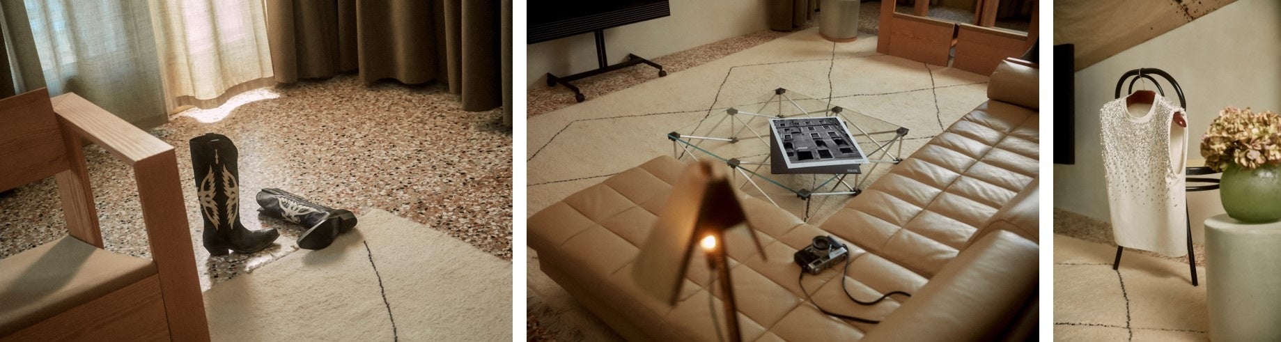 3つの特別なアイテムからなる「Dreamed By Suki Waterhouse」コレクションのインスピレーション減となったのは、ヴェネツィアでの HAUS of Dreamers で披露されたパフォーマンスです。ヴェネツィアの街を自身の視点で捉えたユニークな写真の数々をホテルのエントランスに並べた彼女は、訪れたゲストたちを次々と撮影。その写真をヴェネツィアの「ブリコラ(水路の目印となる木の杭)」をイメージしたメタルポールのインスタレーションに加えていくことで、忘れられない一夜の思い出をアーティスティックに演出しました。