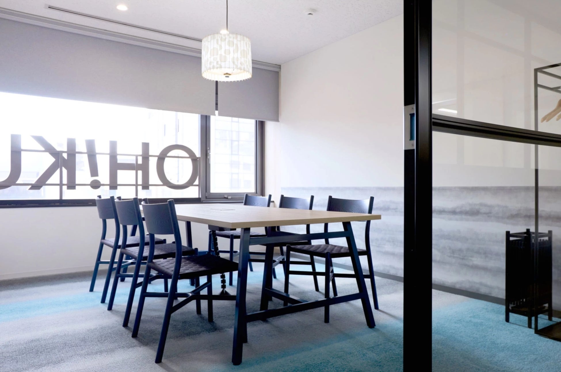 江戸の粋を伝える「水掛け祭り」や「深川縁日」のワクワク感、「富岡八幡宮」や「深川不動尊」の鮮やかな色彩をインテリアに表現。野点傘の下でほっこり、暖簾をくぐった先には「和」のエッセンスが散りばめられたカラフルな空間が広がります。江戸相撲発祥の地に因み「夏巡業KITTE場所」協賛時に作製した「のぼり旗」を展示。日本文化の魅力に溢れたオフィスです。