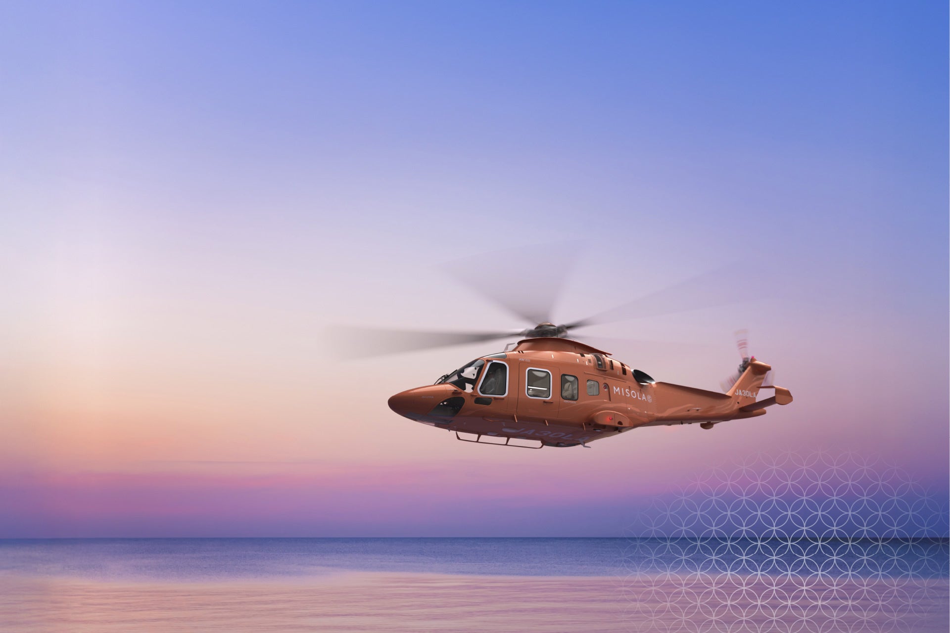 「MISOLA」で今回導入するヘリコプターは、イタリアで生まれたエレガントで最新鋭の双発ジェットヘリコプター AGUSTA AW169 MISOLA Version特別仕様機です。