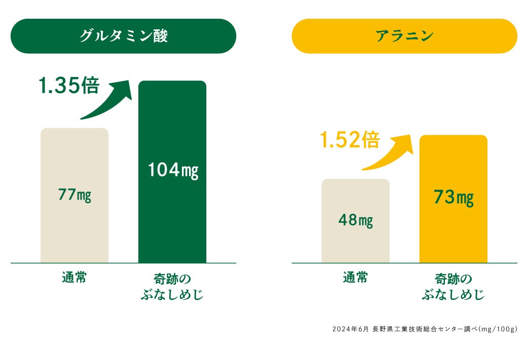 ※1…2024年6月にテスト生育した『奇跡のぶなしめじ』における長野県工業技術総合センターによる試験結果(2024年6月)