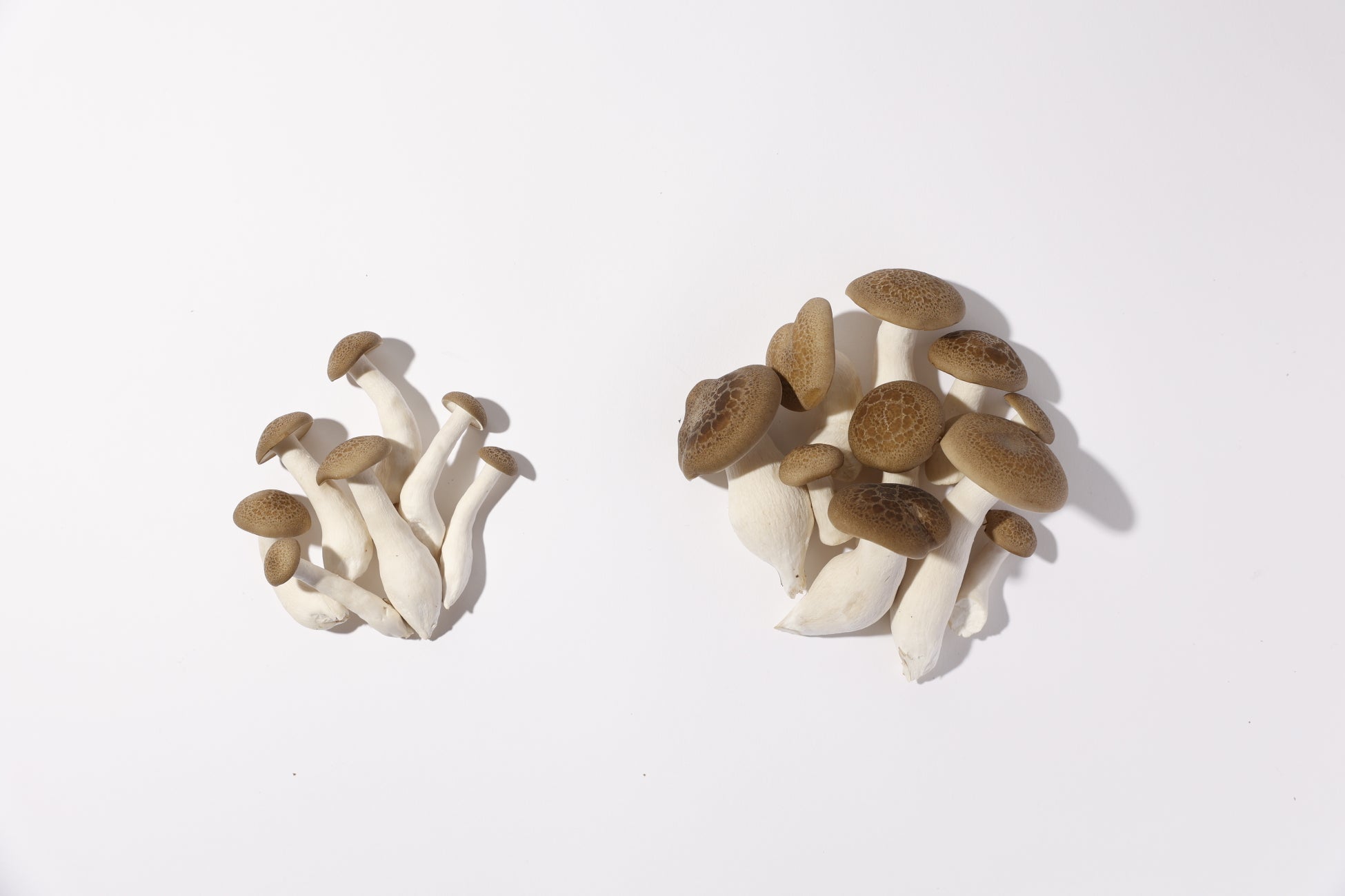 通常よりも長期培養になったことが要因なのか、通常の培養のぶなしめじよりも笠や柄の大きさにばらつきも見えました。栄養価の面では、通常培養に比べてうまみ成分であるグルタミン酸やアラニンが約1.5倍となりました※1。