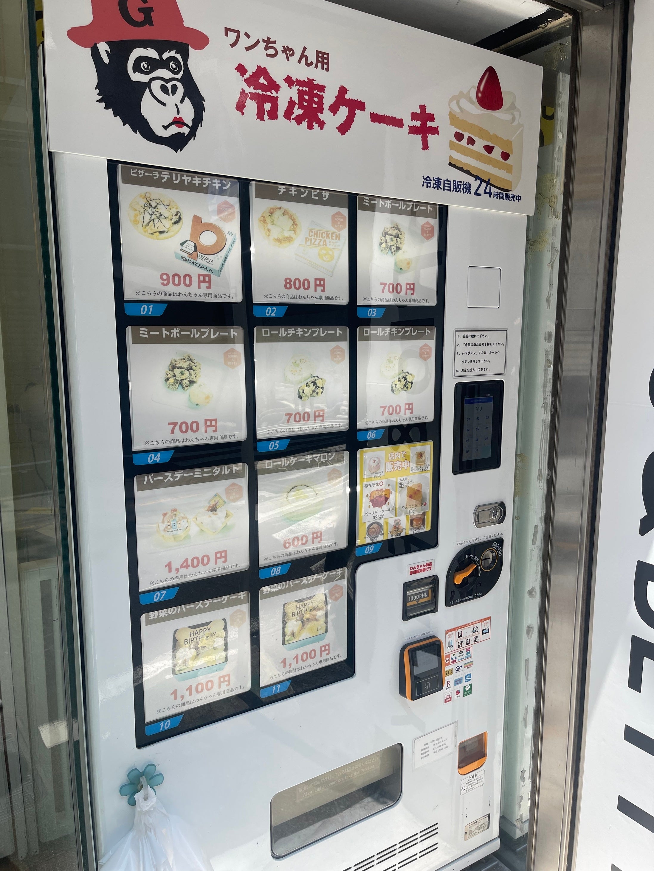 店外に置かれた冷凍自動販売機には、なんとわんちゃん用のスイーツやバースデーケーキ、