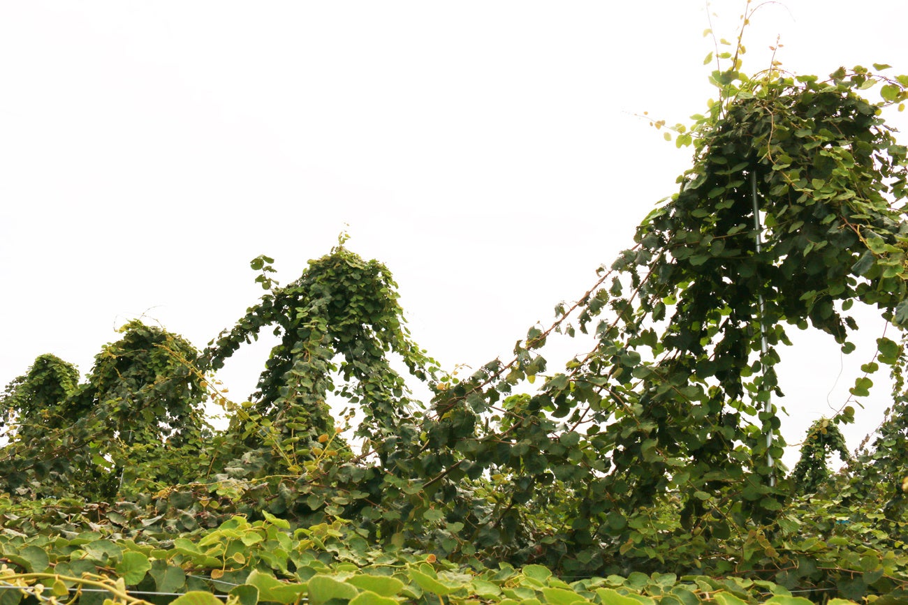 ニュージーランドで主流のストリンギング(翌年に実をつける予定の枝を選定し、棚の上方に吊り上げておく栽培方法)によって、葉全体に日の光が入るようになり、葉のつき方が良くなってきました。その分樹も良くなっているので、来年は品質や食味はさらに向上すると思います。来年以降も栽培方法をマイナーチェンジしながら、実の大きさや糖度などをさらに向上できるように努めていきたいです。