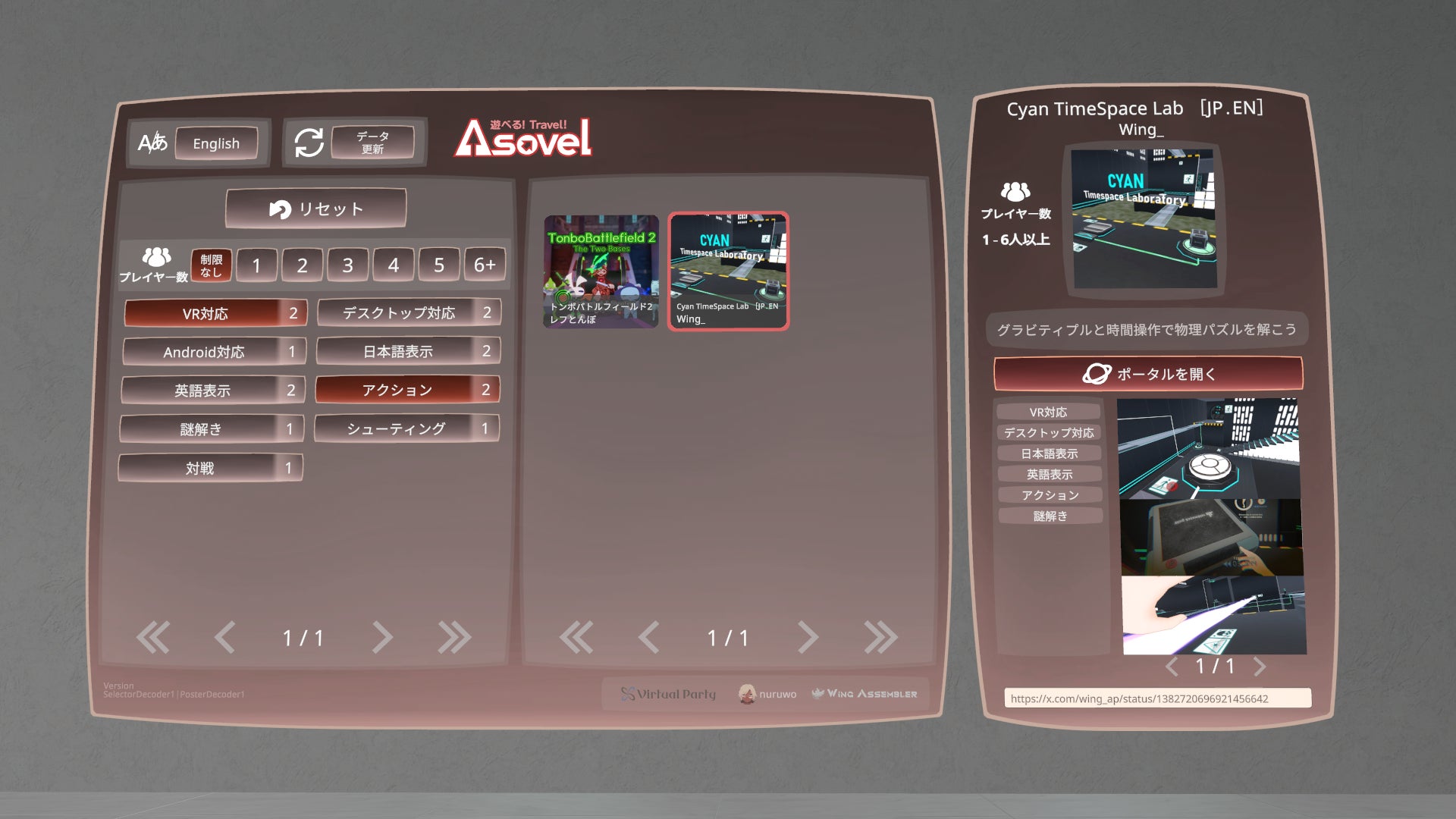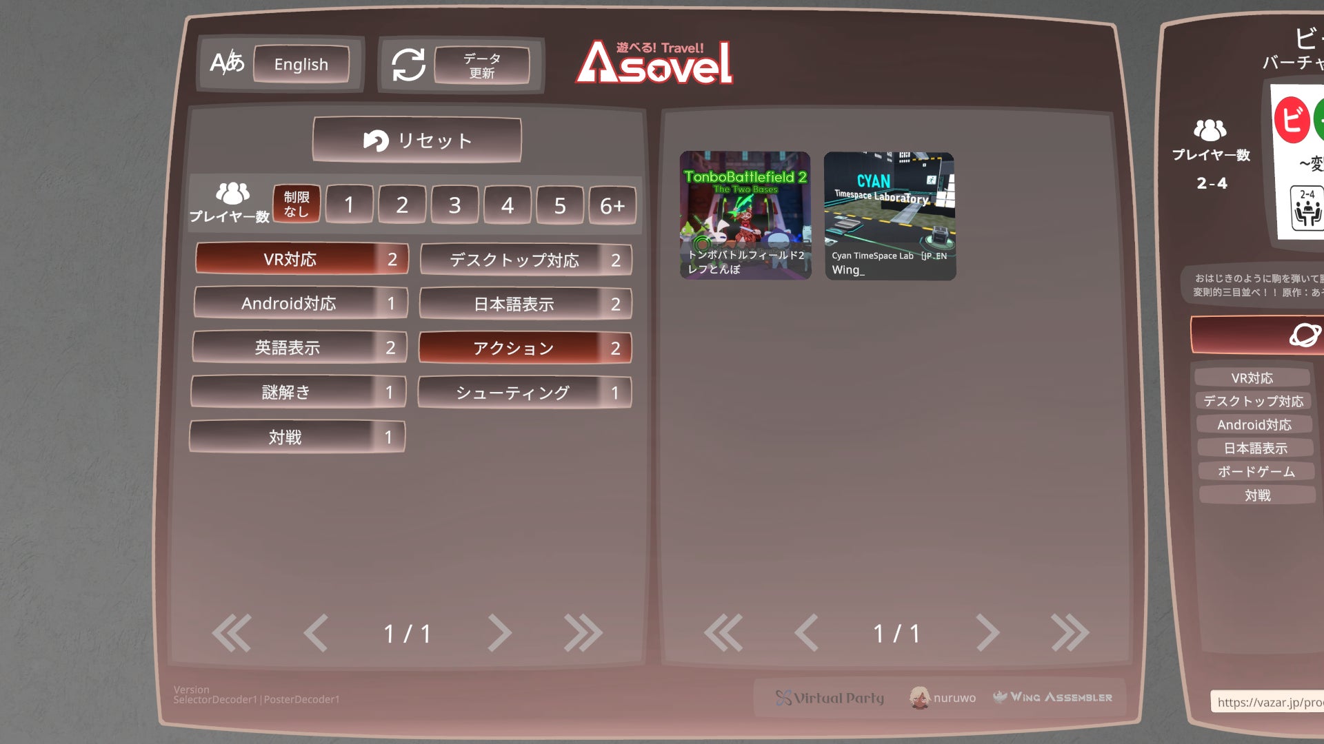 株式会社バーチャルパーティー、VRChat上でゲームワールドが登録・検索できるサービス「Asovel」を無料配布開始。