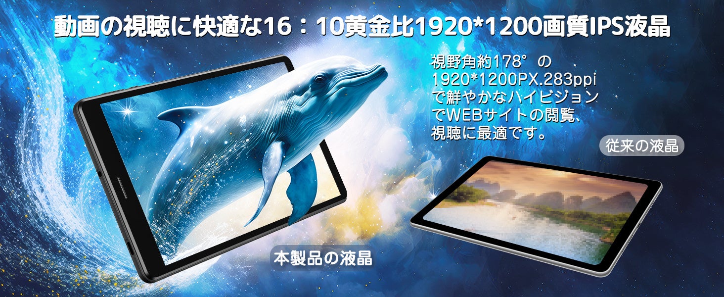 ユアユーT30Proタブレットは高解像度1920*1200フルHDのIPSディスプレイ搭載、細部まで色鮮やかに映します。電子書籍、YouTube閲覧が快適になり、13MPリアカメラと5MPフロントカメラを搭載し、旅行時の記念撮影用としても、十分に活躍できる品質です。また、T30PROには3.5mmの汎用イヤホンジャックと高音質なデュアルスピーカーを搭載して、映画館のような没入感のある体験を提供します。