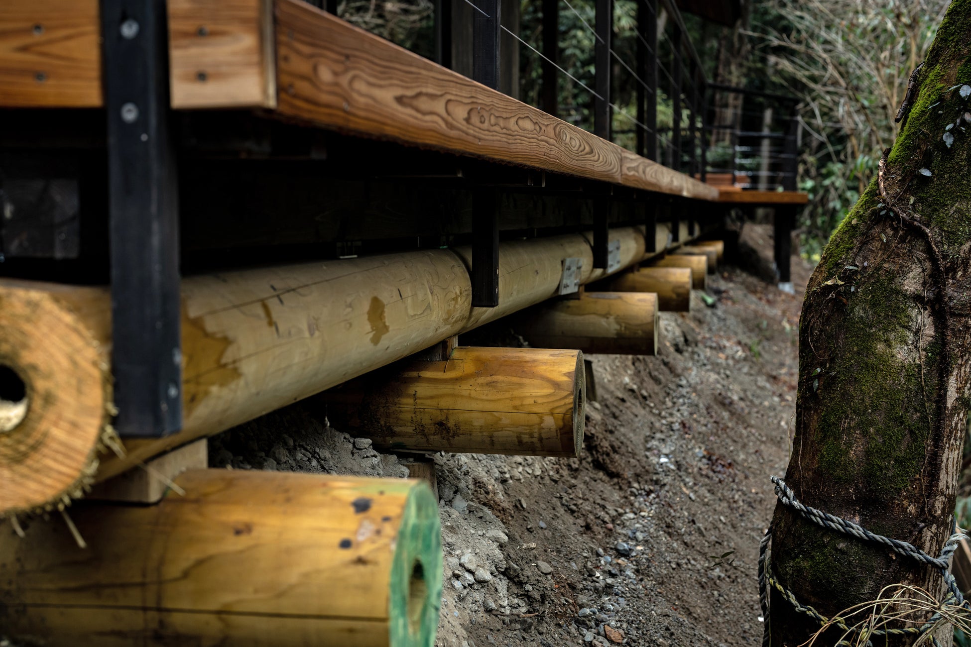 土が呼吸する木製浮基礎での宿泊体験