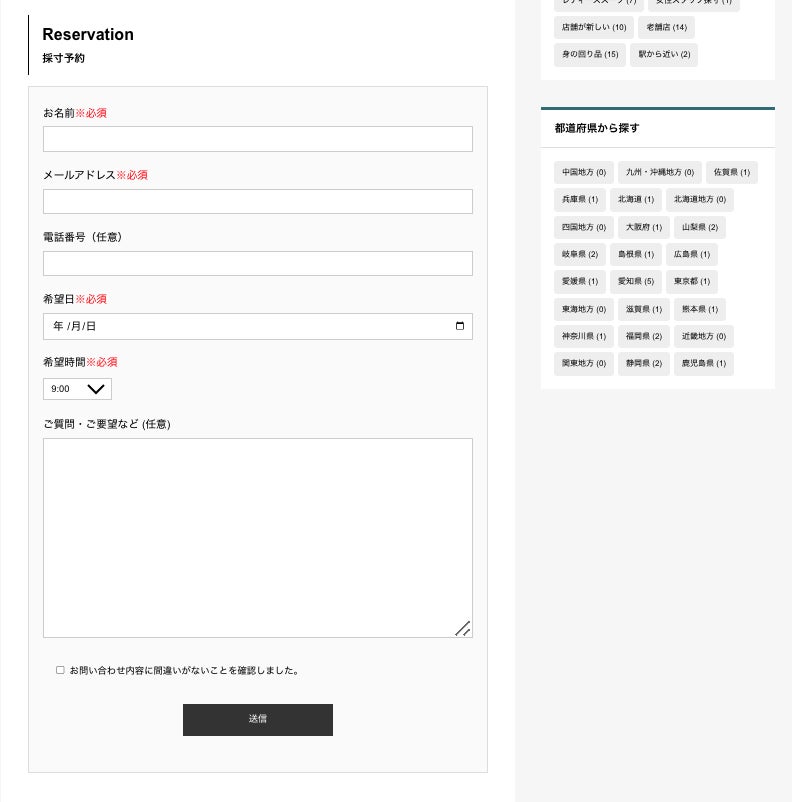 オーダースーツを取り扱う店舗様の場合、採寸予約フォームを店舗詳細ページに設置しております。