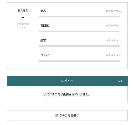 「商品」「雰囲気」「接客」「コスパ」の4面評価となっております。