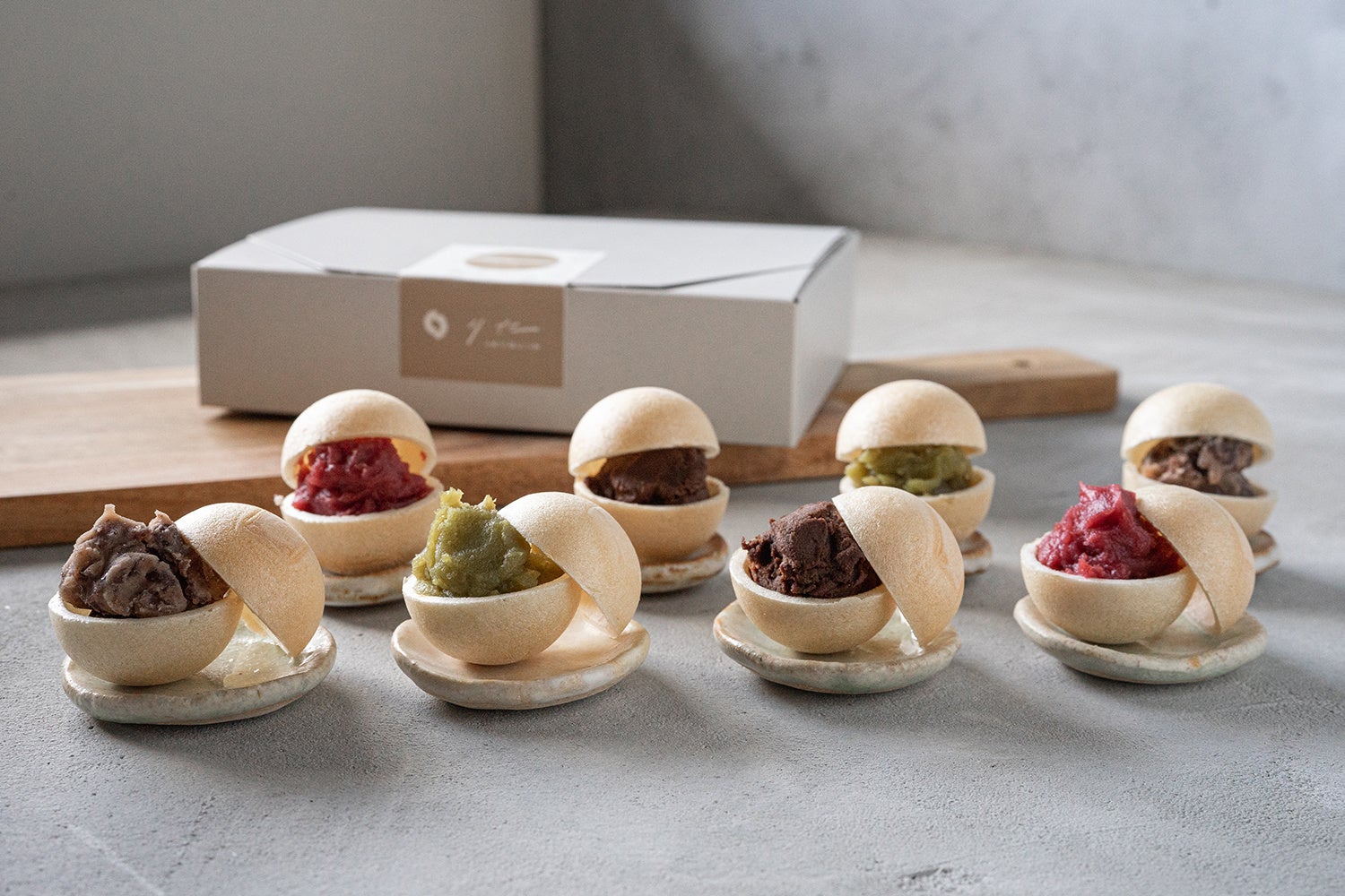 手土産にもおすすめの一品をご紹介します。 まんまるな見た目がかわいらしく、ちょっとしたおやつタイムにぴったりなサイズ感の「糸モナカ」。 お味は「オリーブの葉」「ビーツ」「カカオ」「あんこ」の4種類。