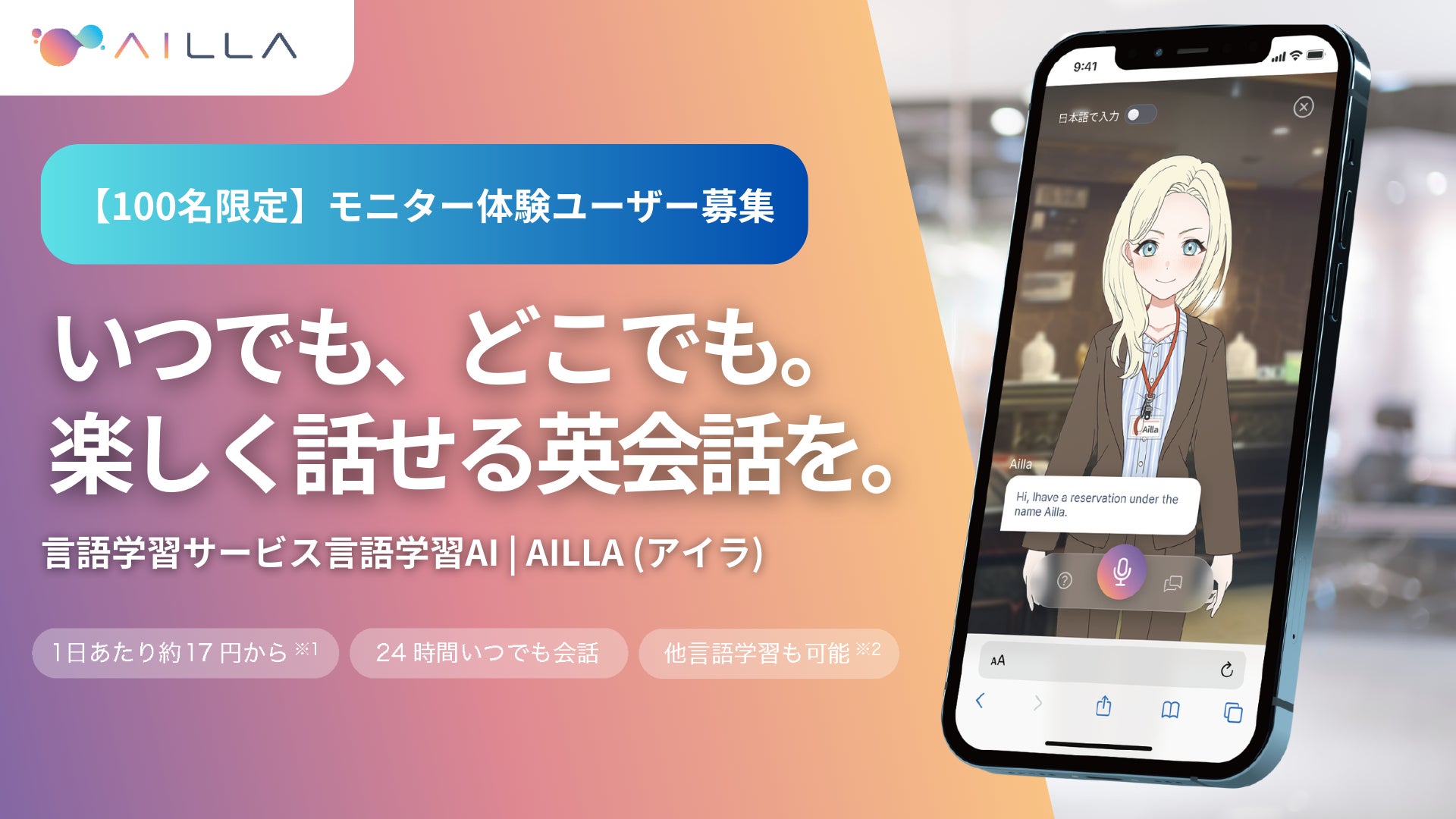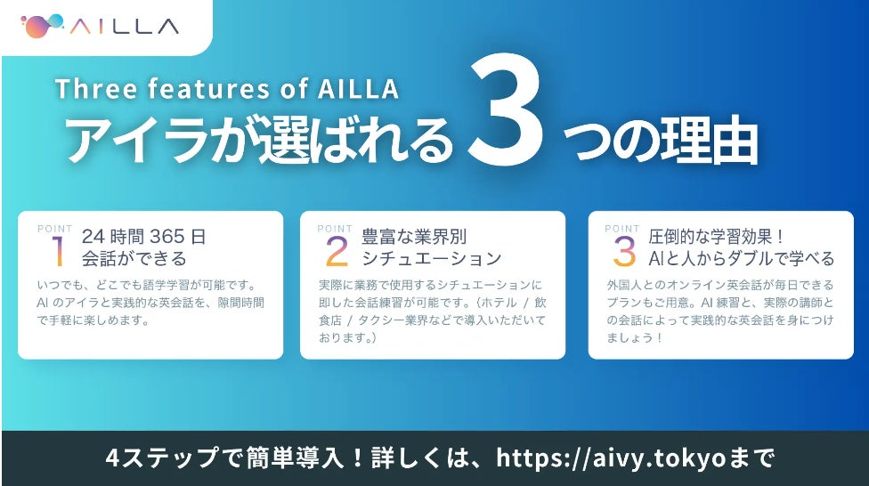 【100名限定】AI英会話トレーニングサービス『AILLA(アイラ)』個人向け提供記念のモニター募集キャンペーン開始