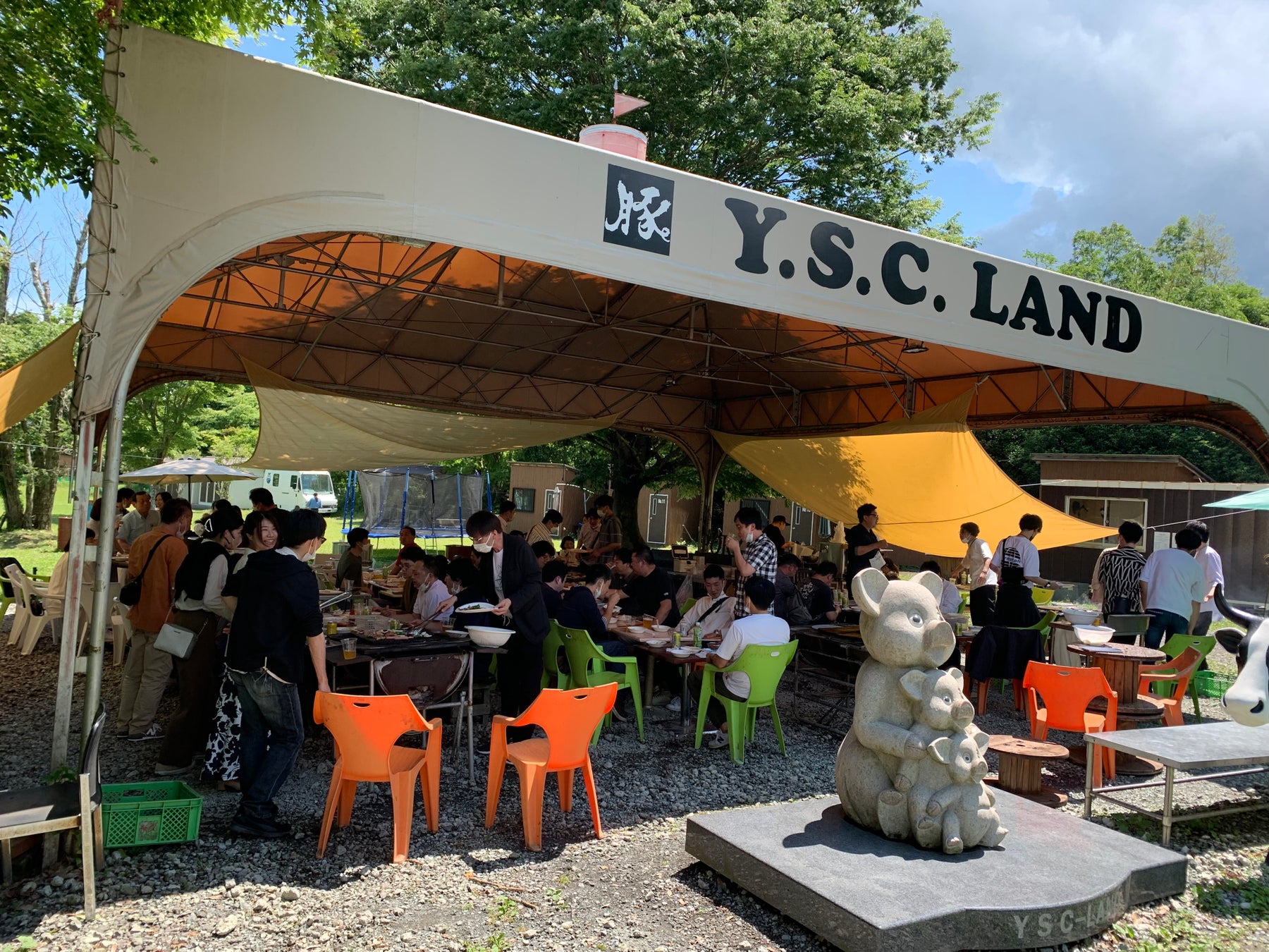 初日の昼食時には、恒例のバーベキュー会場でテーブルを囲い、久々の対面での再会に歓喜しました。