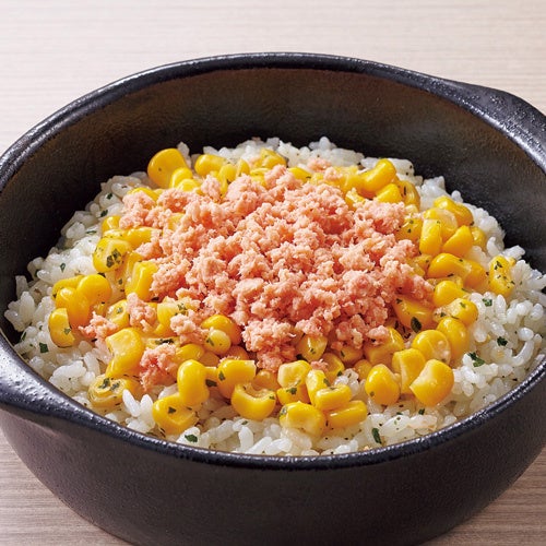 ほどよい塩気が美味な国産鮭のほぐし身と、ほんのり甘いコーンを、バジルの風味を効かせた爽やかなご飯に合わせました。塩味と甘味のバランスが絶妙な、風味豊かな洋風メニューです。