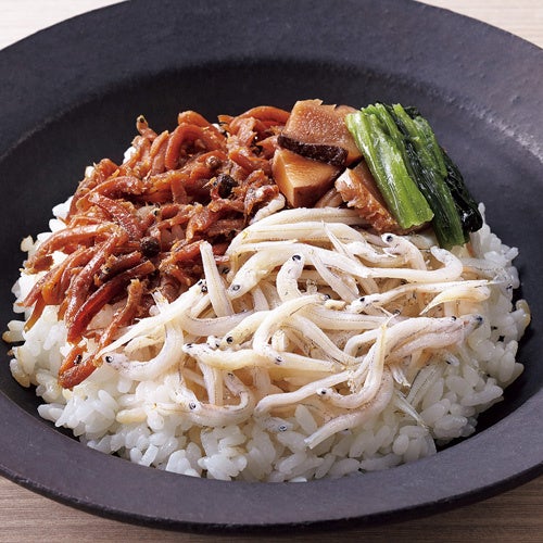 国内で水揚げされたしらすを鮮度のよいうちに調理。素材の持ち味を生かした釜揚げと、爽やかな香りが漂う山椒煮に仕上げました。2つの味と色合いを愉しめます。ふっくら炊き上げたご飯と一緒にどうぞ。