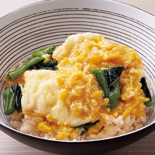 濃厚な旨味を湛える国産の鰤を、カラリと揚げて美味しさを高めた後、薄味でさっと炊き上げたぶなしめじやえのき茸と合わせました。卵でふんわり優しくとじた、秋の風味が存分に愉しめる贅沢なご飯です。