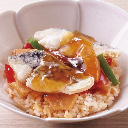「鰆の黒酢餡かけご飯」