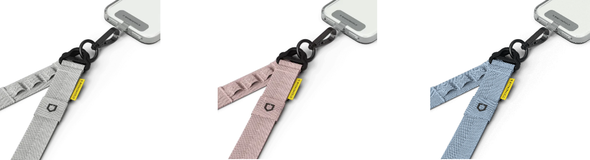 再生PET素材を使用し、環境にやさしいサステナブルで編み込みタイプの高耐久なネックストラップで、カジュアルなシーンにもぴったりです。