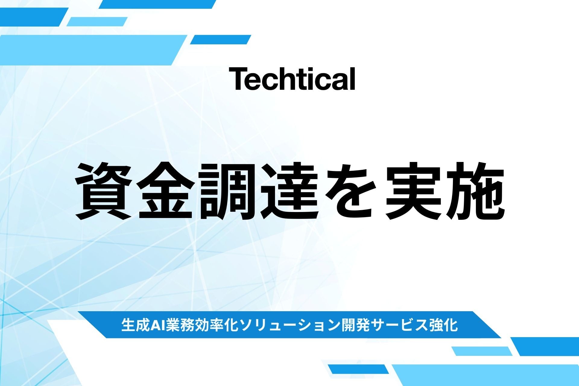生成AIを活用した業務効率化ソリューションを提供する株式会社Techtical(以下「当社」)は、このたび日本政策金融公庫より資金調達を完了いたしましたことをお知らせいたします。今回の調達資金を活用し、より高度で効率的な生成AIソリューションの開発を強化することで、お客様の生産性向上と競争力強化に貢献してまいります。