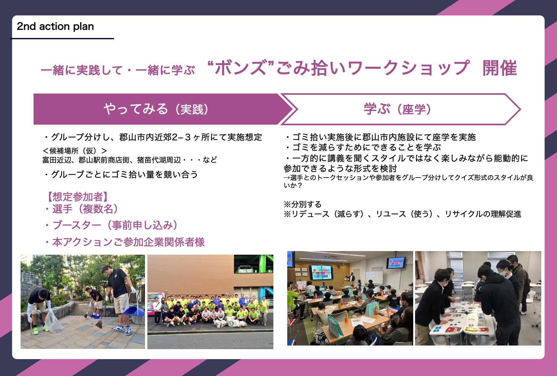 この度、HEROs PLEDGEに11番目のパートナー団体として参画させていただくことになりました。福島県はごみ排出量が全国的にも多い県です。その地域で活動するプロスポーツクラブとして何ができるか。“CHANGE THE GOODs ACTION”というプロジェクトを今年からスタートしていますが、点ではなく継続的なアクションとすることで、地域の課題解決に少しでも貢献できるよう取り組んでまいりたいと思っております。